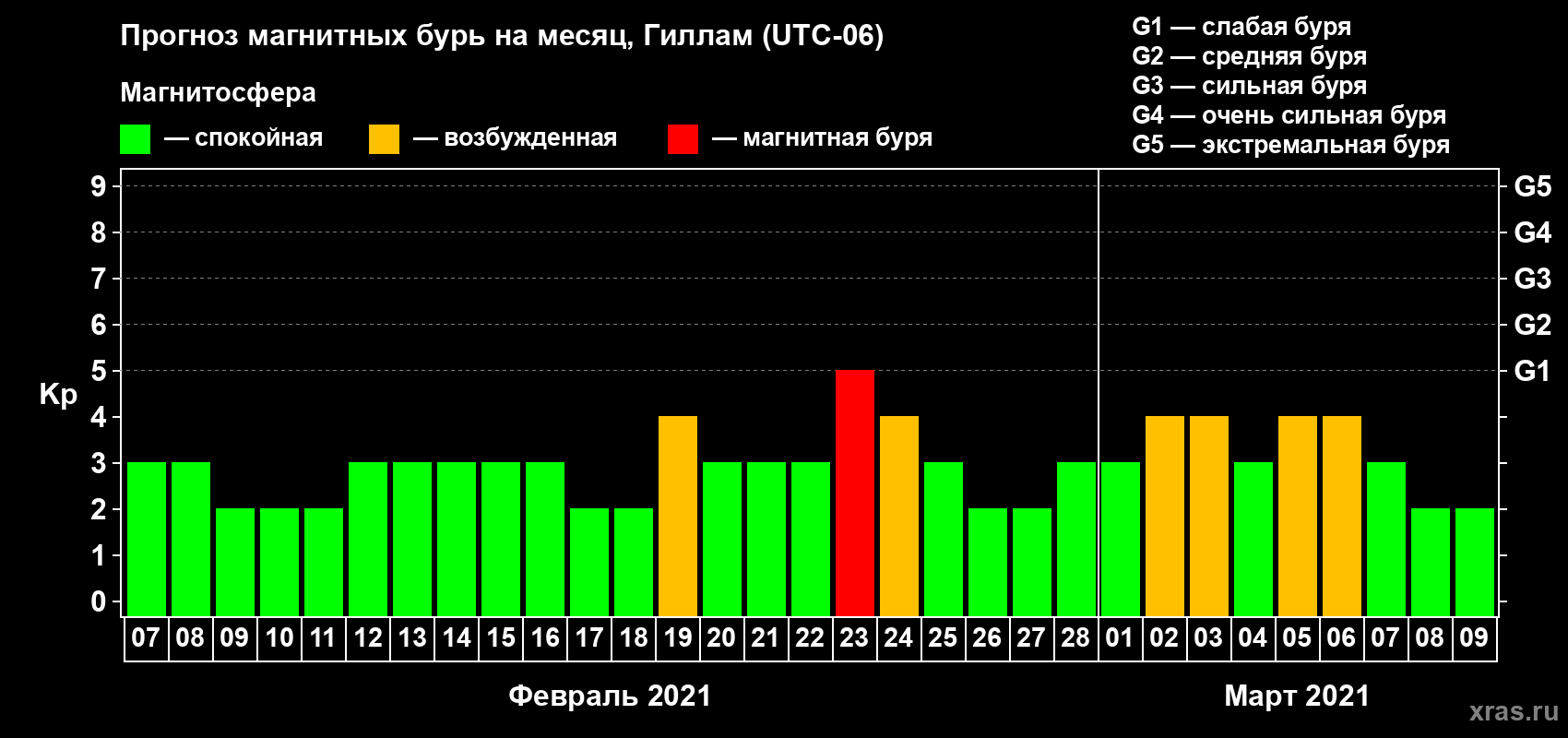 Прогноз магнитных бурь в Гилламе — 7 февраля 2021 года