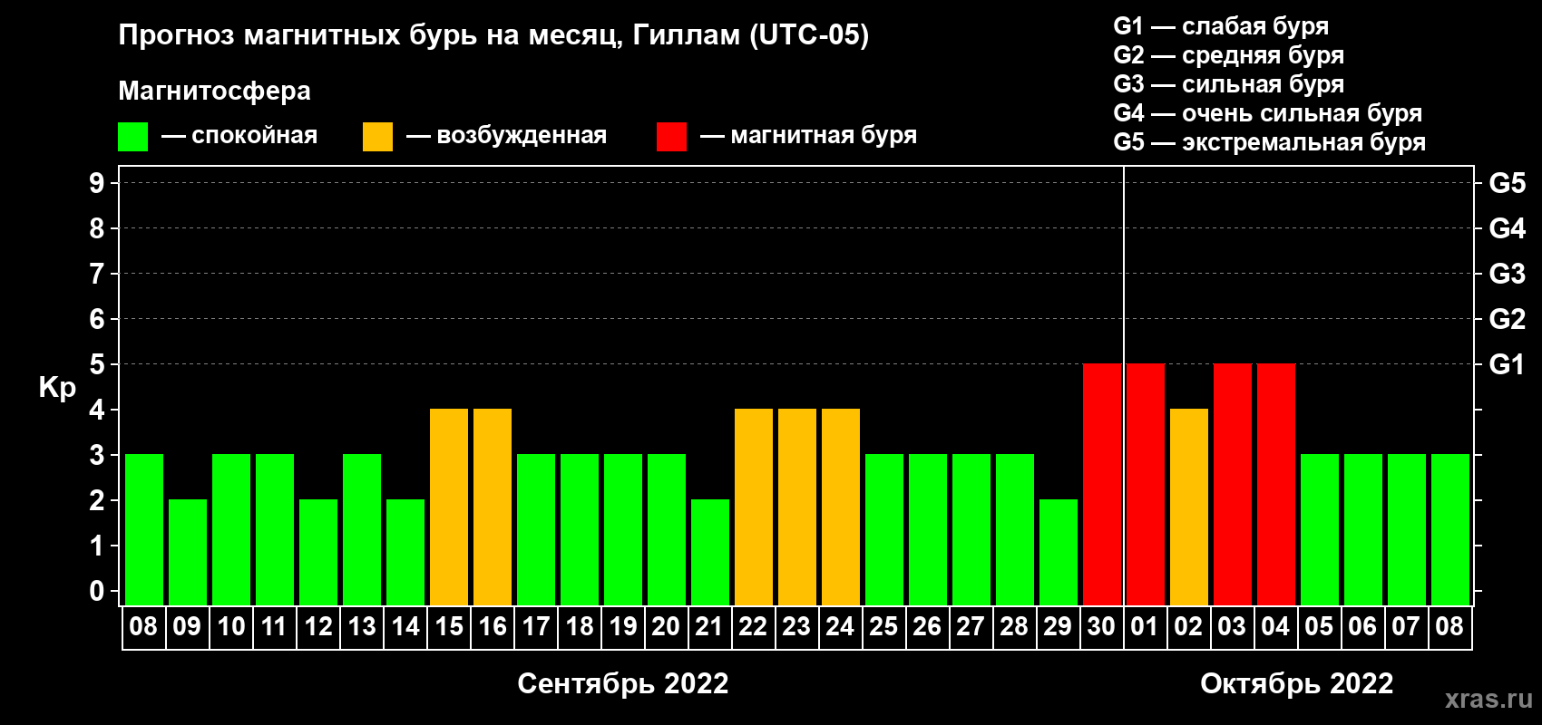Прогноз магнитных бурь в Гилламе — 8 сентября 2022 года