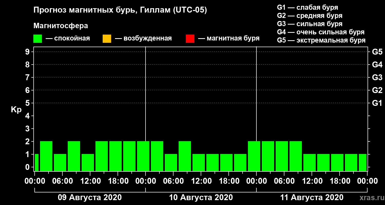 Прогноз магнитных бурь в Гилламе — 9 августа 2020 года