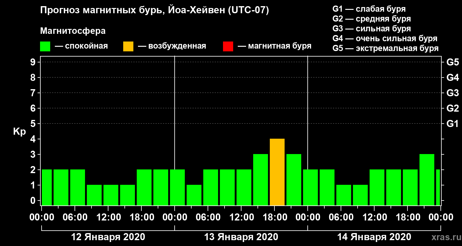Прогноз магнитных бурь в Йоа-Хейвене — 12 января 2020 года