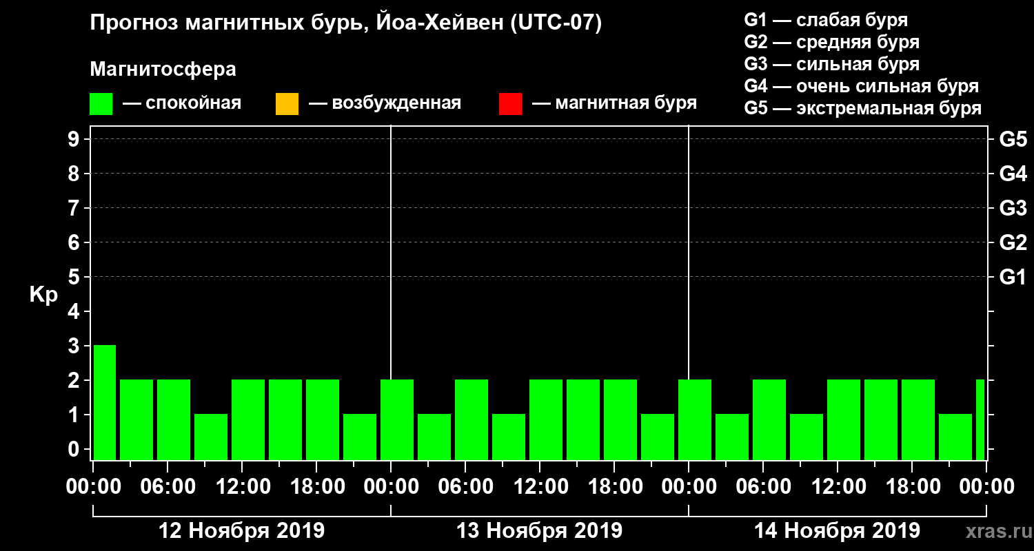 Прогноз магнитных бурь в Йоа-Хейвене — 12 ноября 2019 года