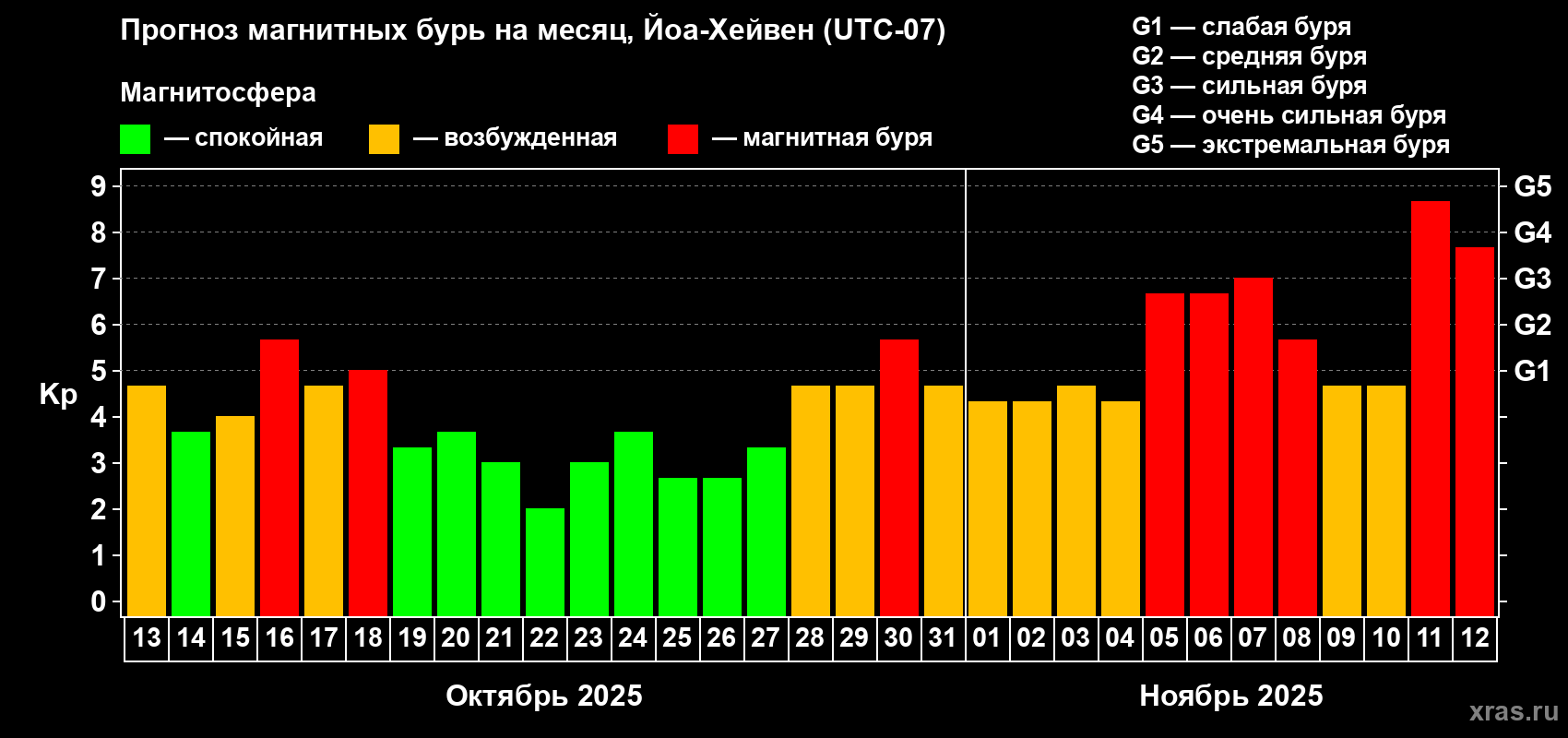Прогноз магнитных бурь в Йоа-Хейвене — 13 октября 2025 года