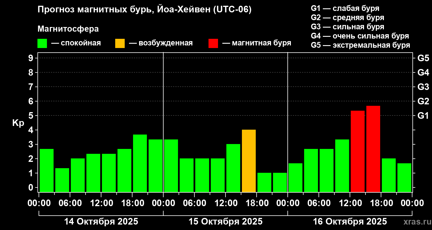 Прогноз магнитных бурь в Йоа-Хейвене — 14 октября 2025 года