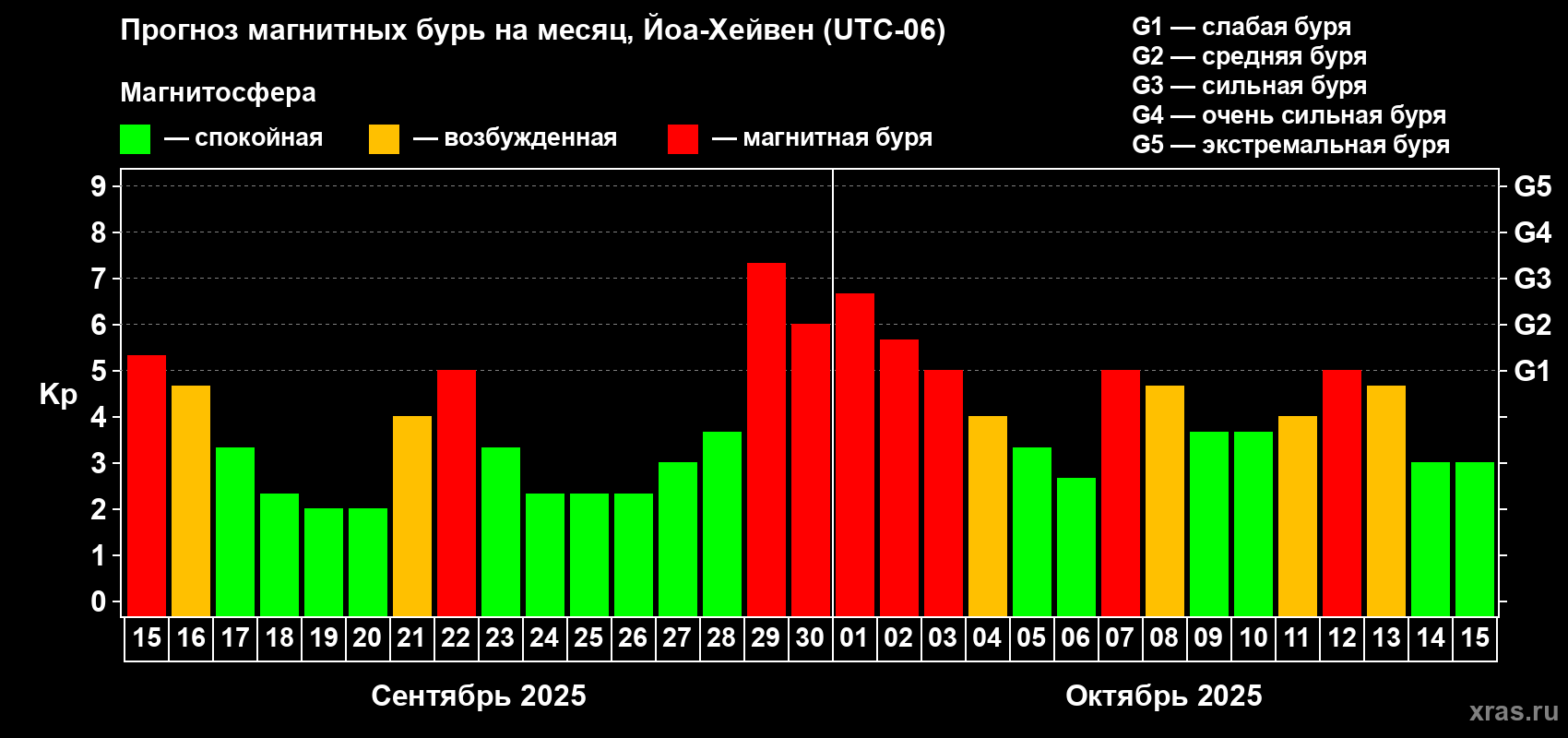 Прогноз магнитных бурь в Йоа-Хейвене — 15 сентября 2025 года
