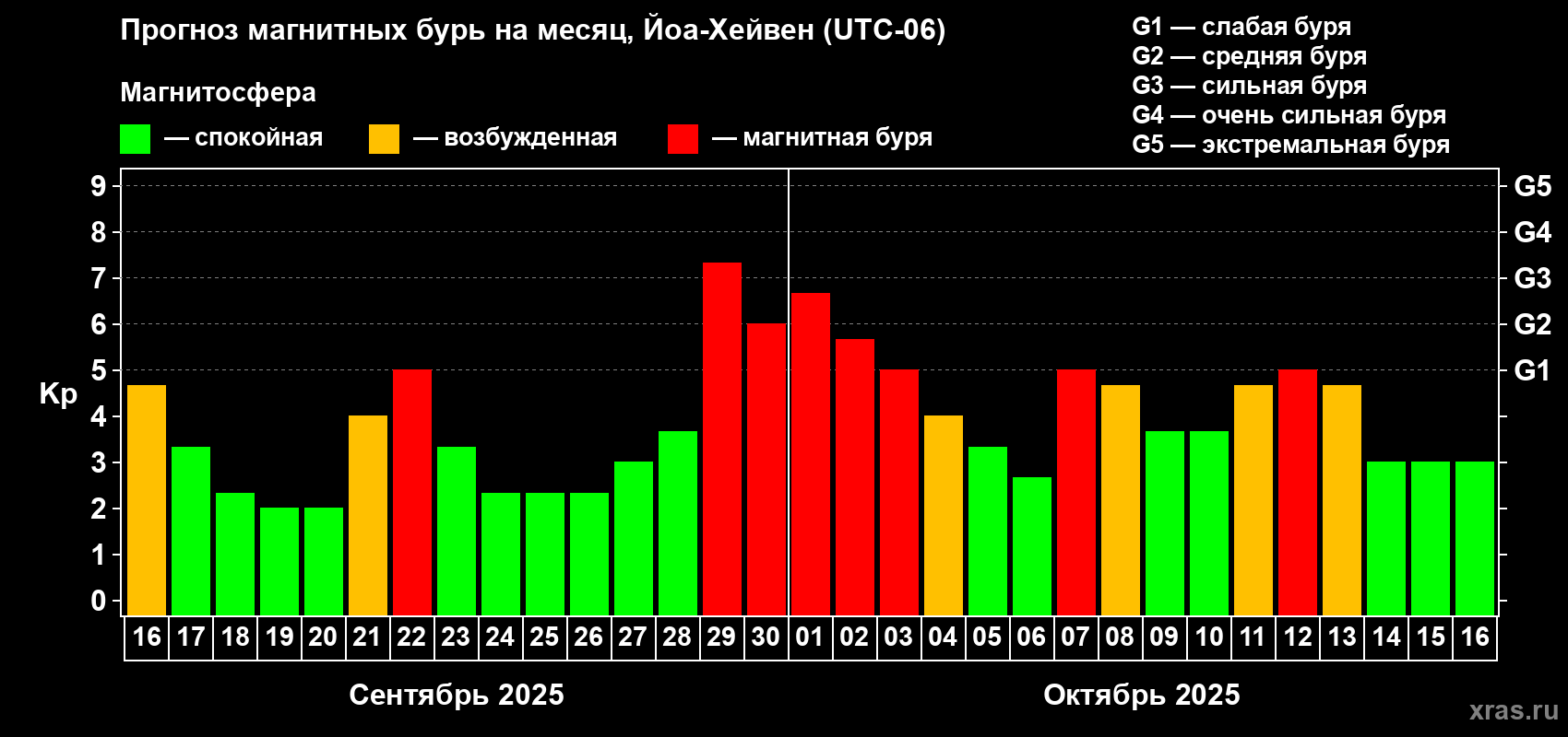 Прогноз магнитных бурь в Йоа-Хейвене на 16 сентября 2025 года