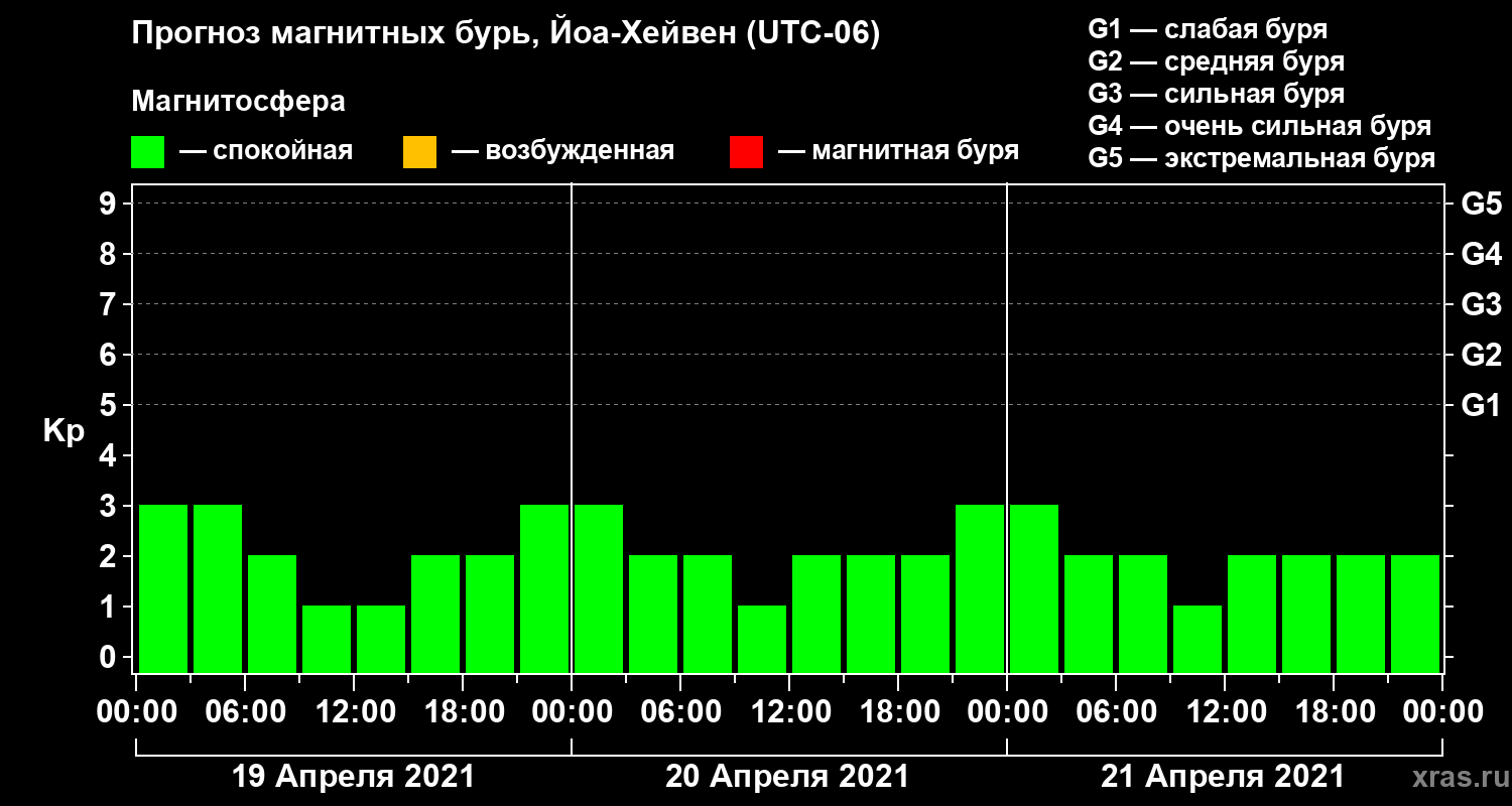 Прогноз магнитных бурь в Йоа-Хейвене на 19 апреля 2021 года