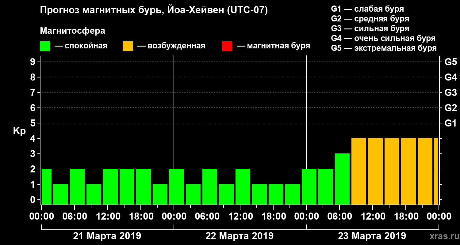 Прогноз магнитных бурь в Йоа-Хейвене — 21 марта 2019 года