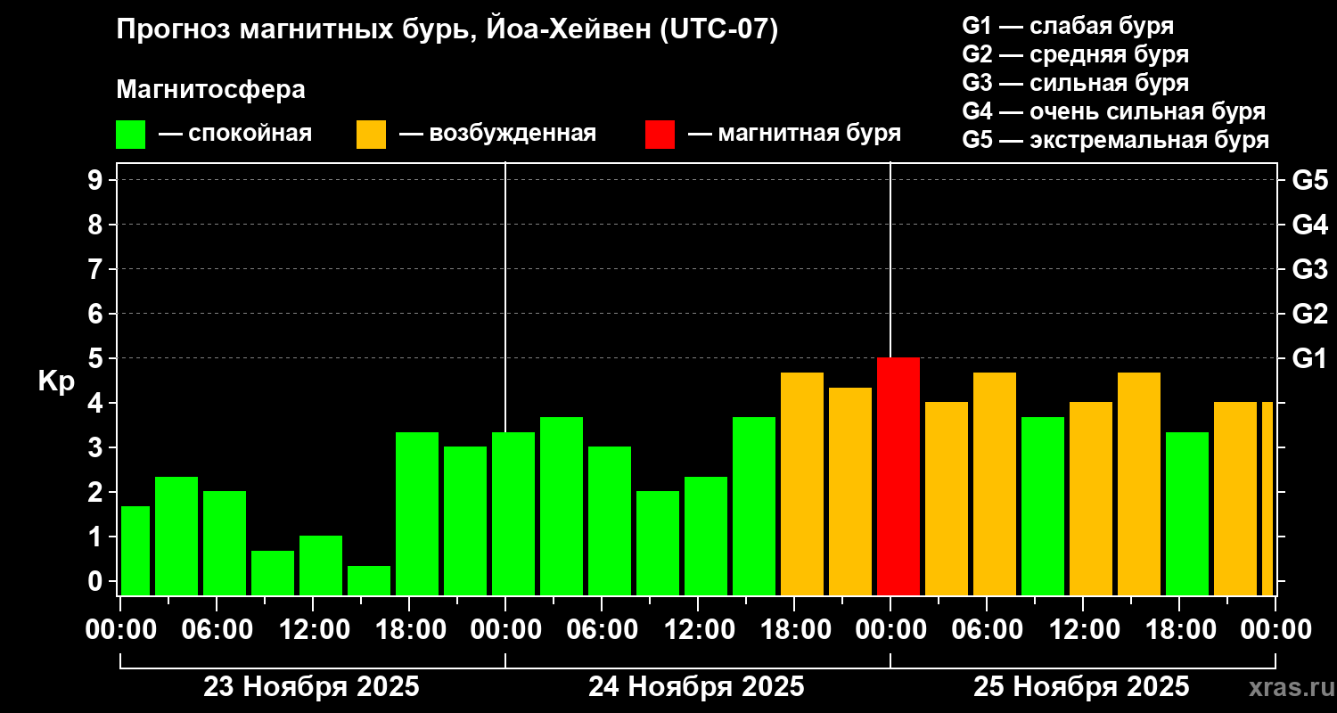 Прогноз магнитных бурь в Йоа-Хейвене — 23 ноября 2025 года