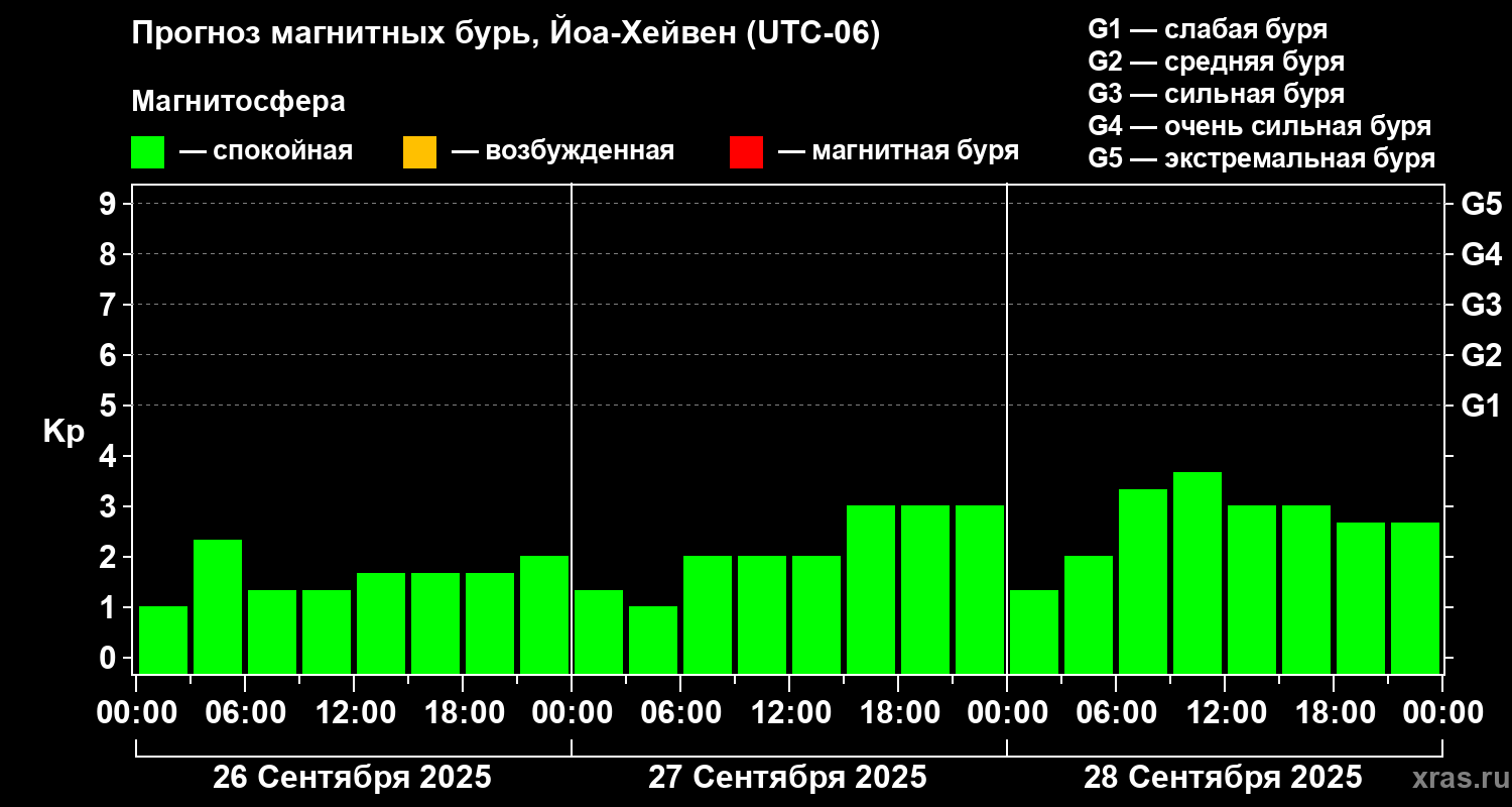 Прогноз магнитных бурь в Йоа-Хейвене на 26 сентября 2025 года