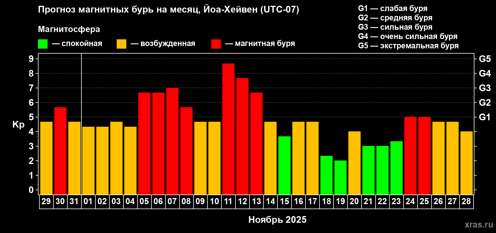 Прогноз магнитных бурь в Йоа-Хейвене — 29 октября 2025 года