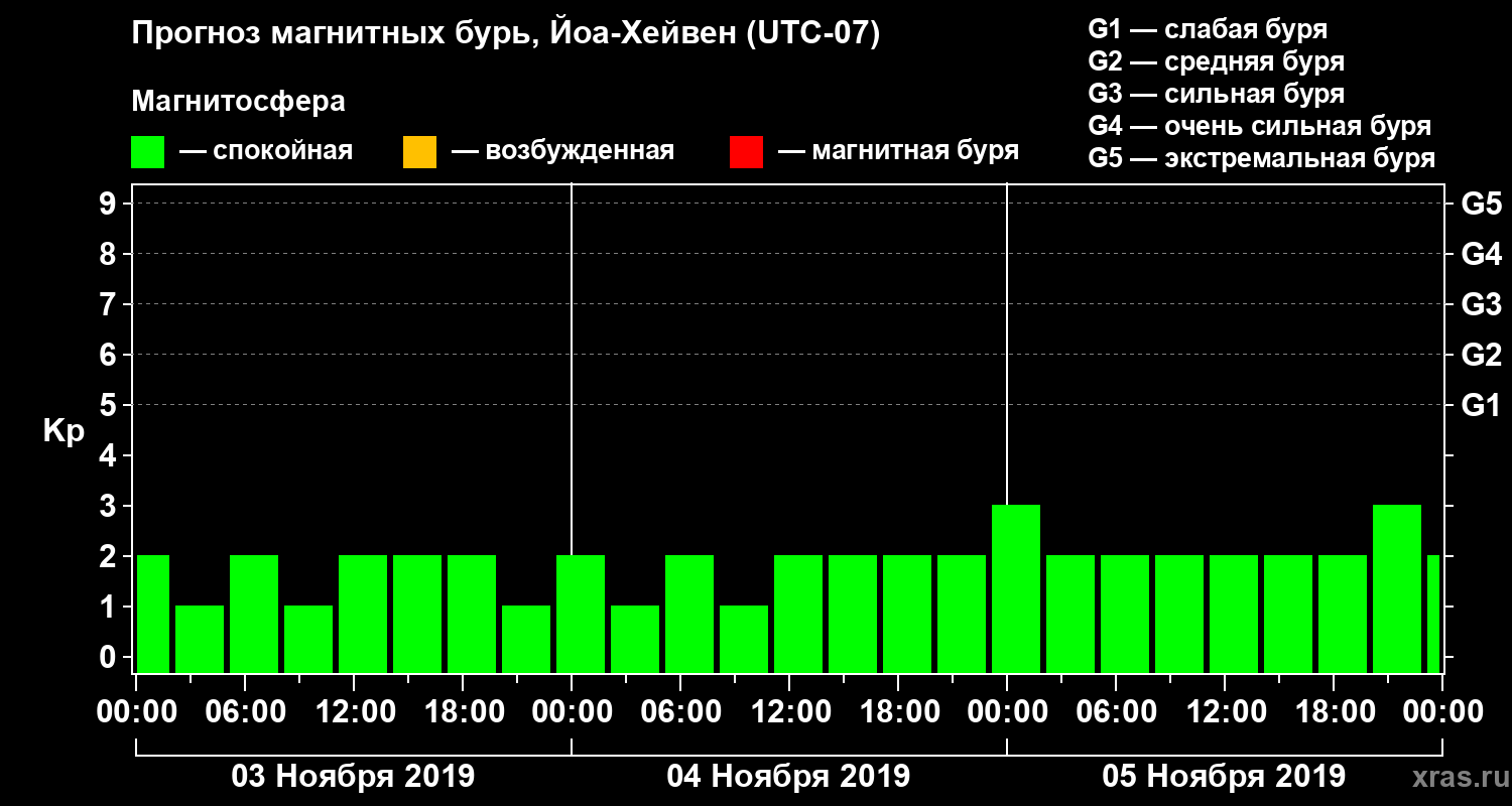 Прогноз магнитных бурь в Йоа-Хейвене — 3 ноября 2019 года