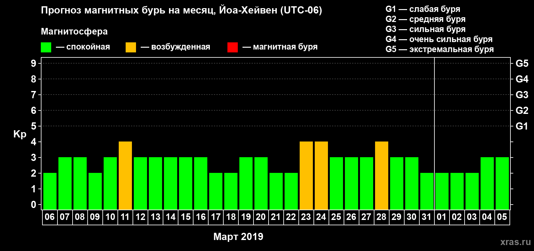Прогноз магнитных бурь в Йоа-Хейвене — 6 марта 2019 года