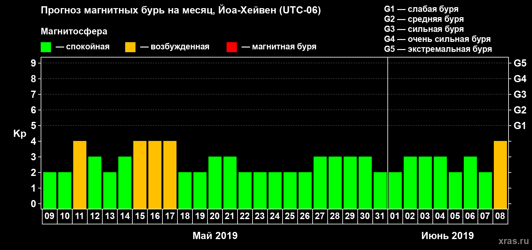 Прогноз магнитных бурь в Йоа-Хейвене — 9 мая 2019 года