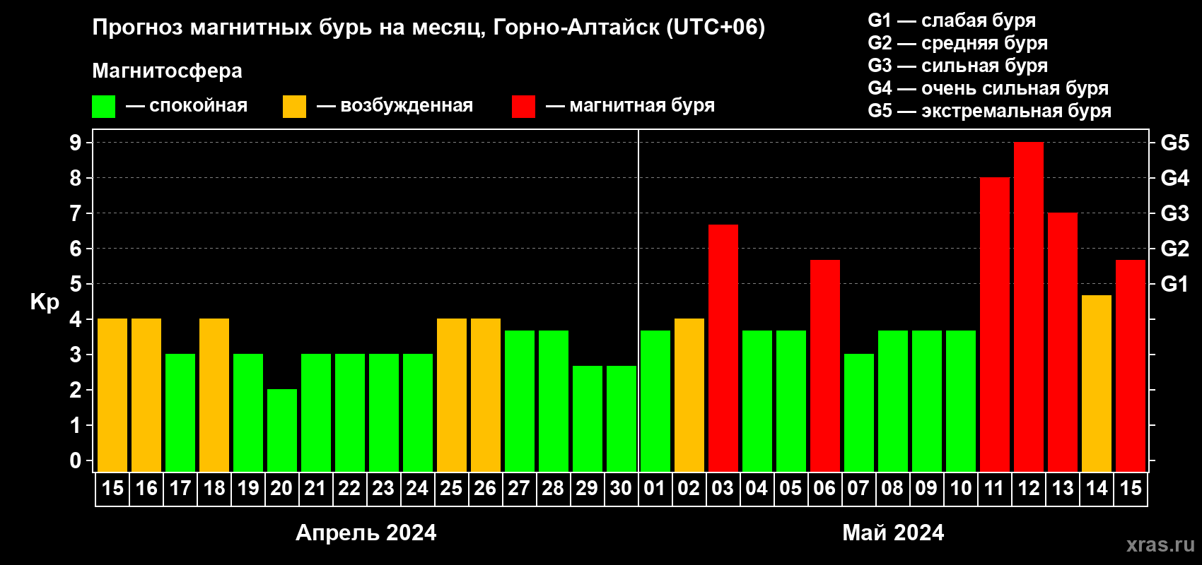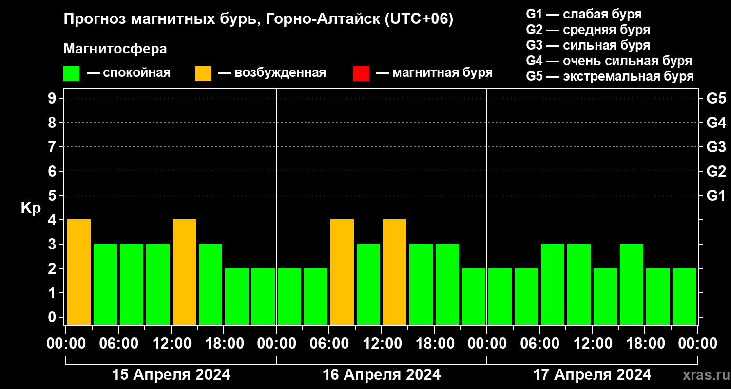 Прогноз магнитных бурь в Горно-Алтайске — 15 апреля 2024 года