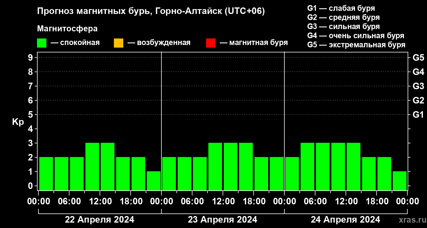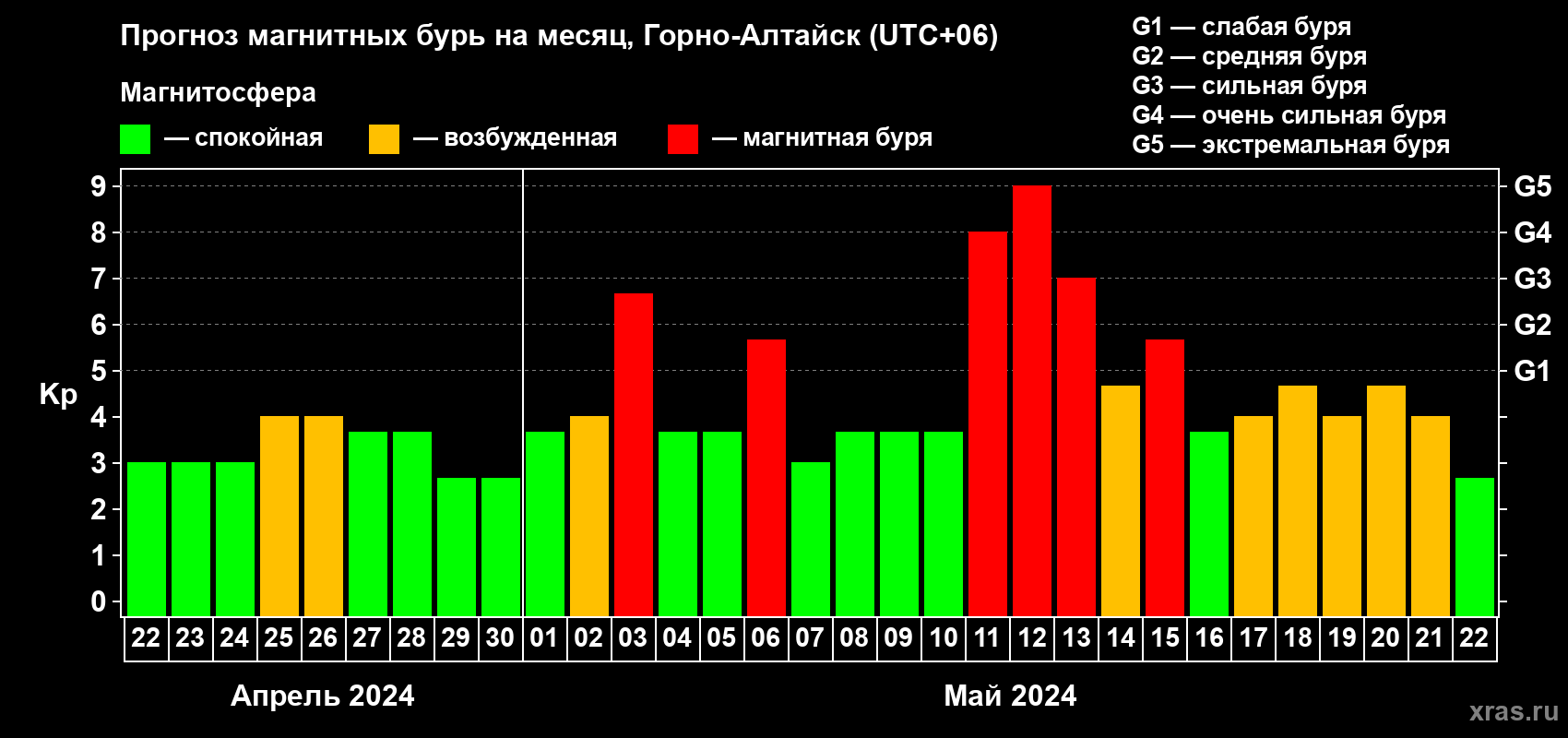 Прогноз магнитных бурь в Горно-Алтайске на 22 апреля 2024 года