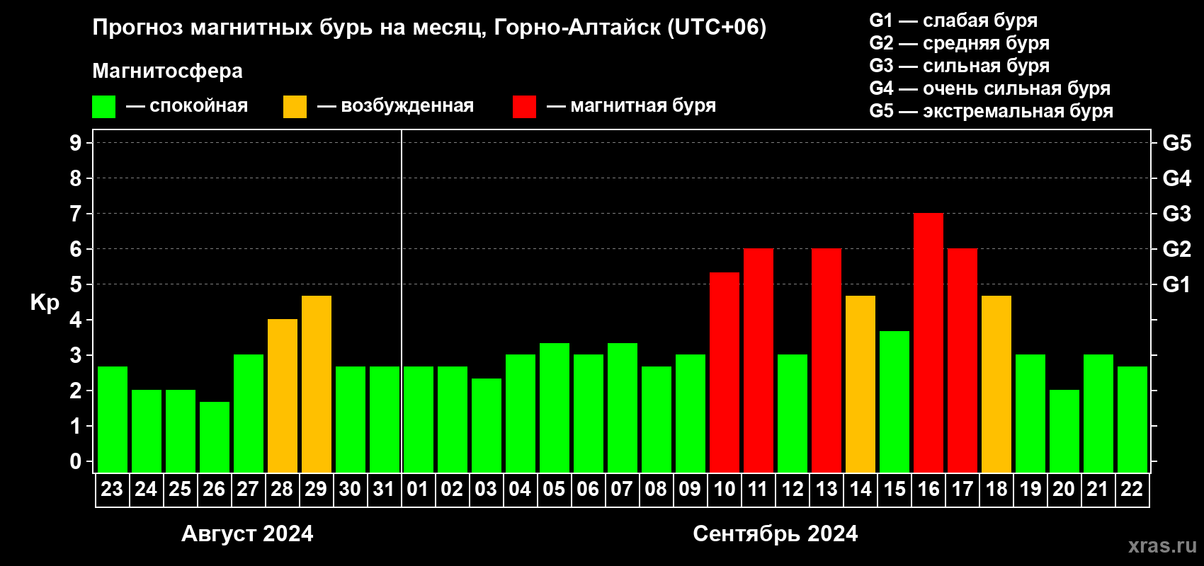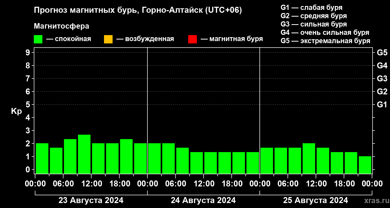 Прогноз магнитных бурь в Горно-Алтайске — 23 августа 2024 года
