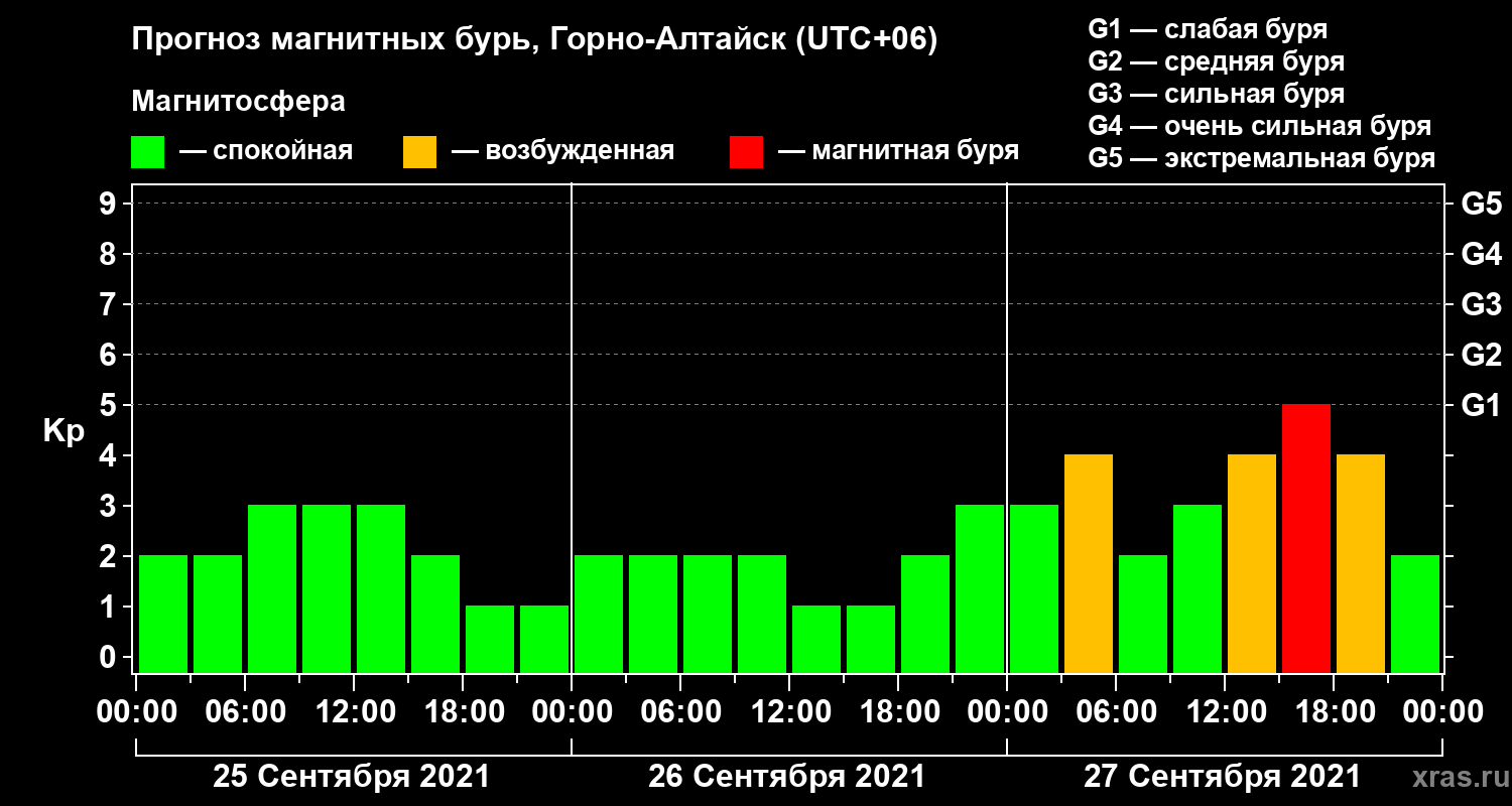 Прогноз магнитных бурь в Горно-Алтайске на 25 сентября 2021 года