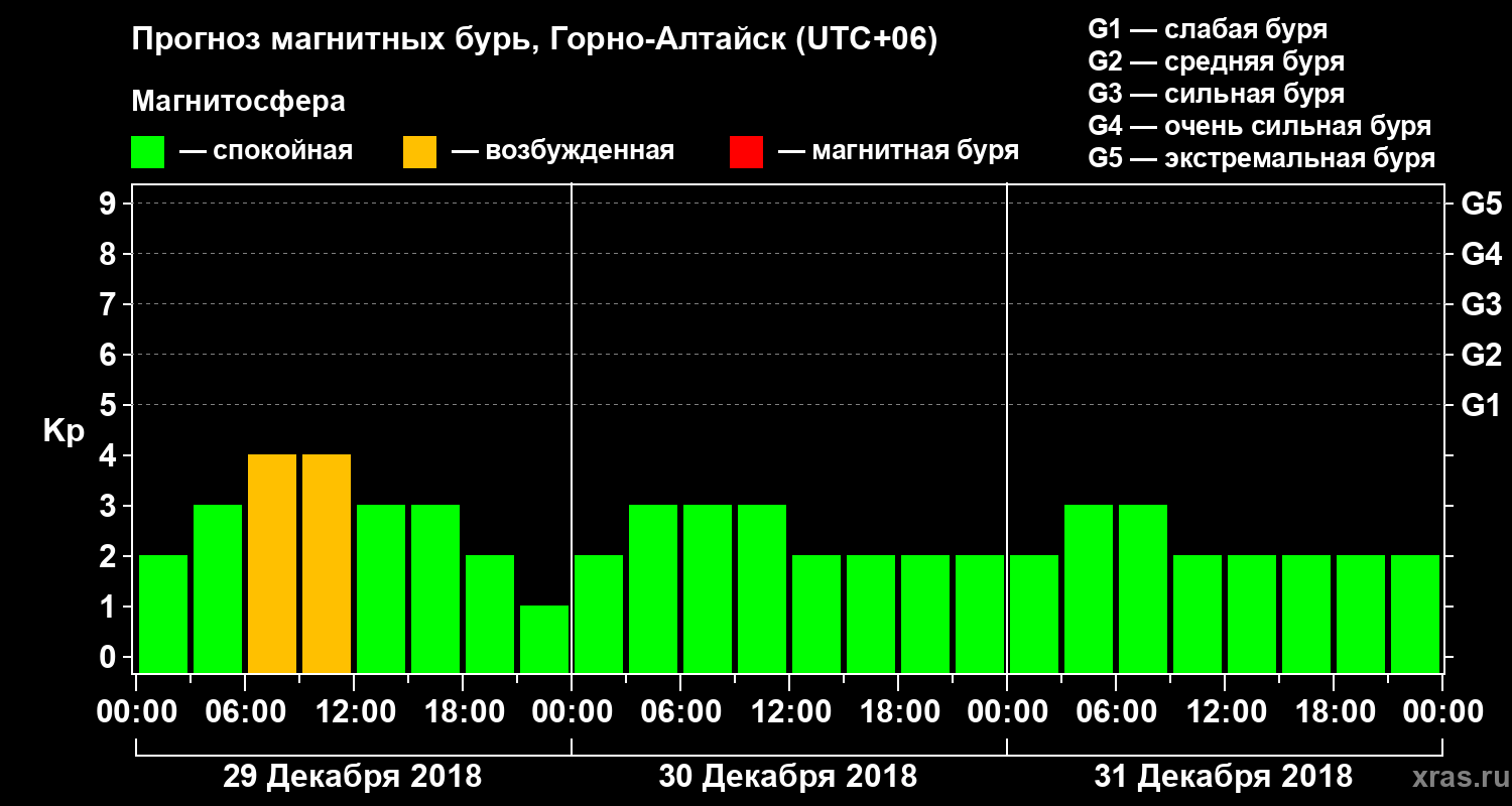 Прогноз магнитных бурь в Горно-Алтайске — 29 декабря 2018 года