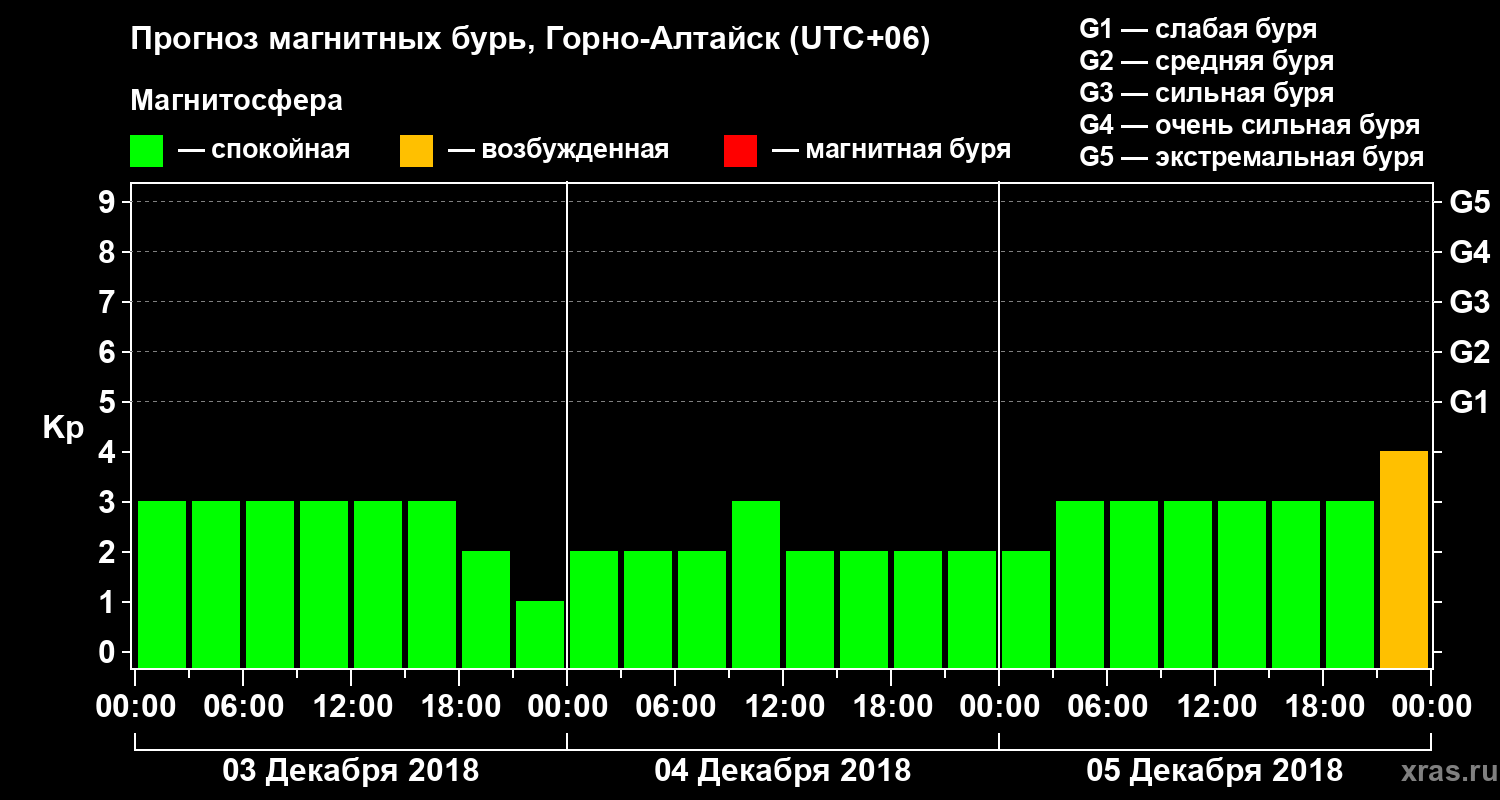 Прогноз магнитных бурь в Горно-Алтайске на 3 декабря 2018 года