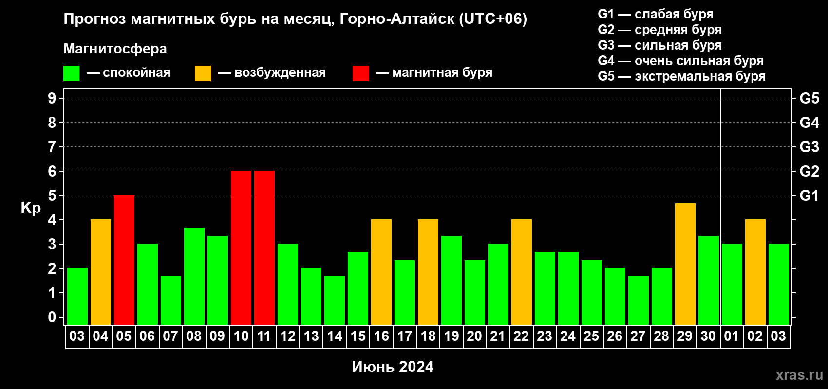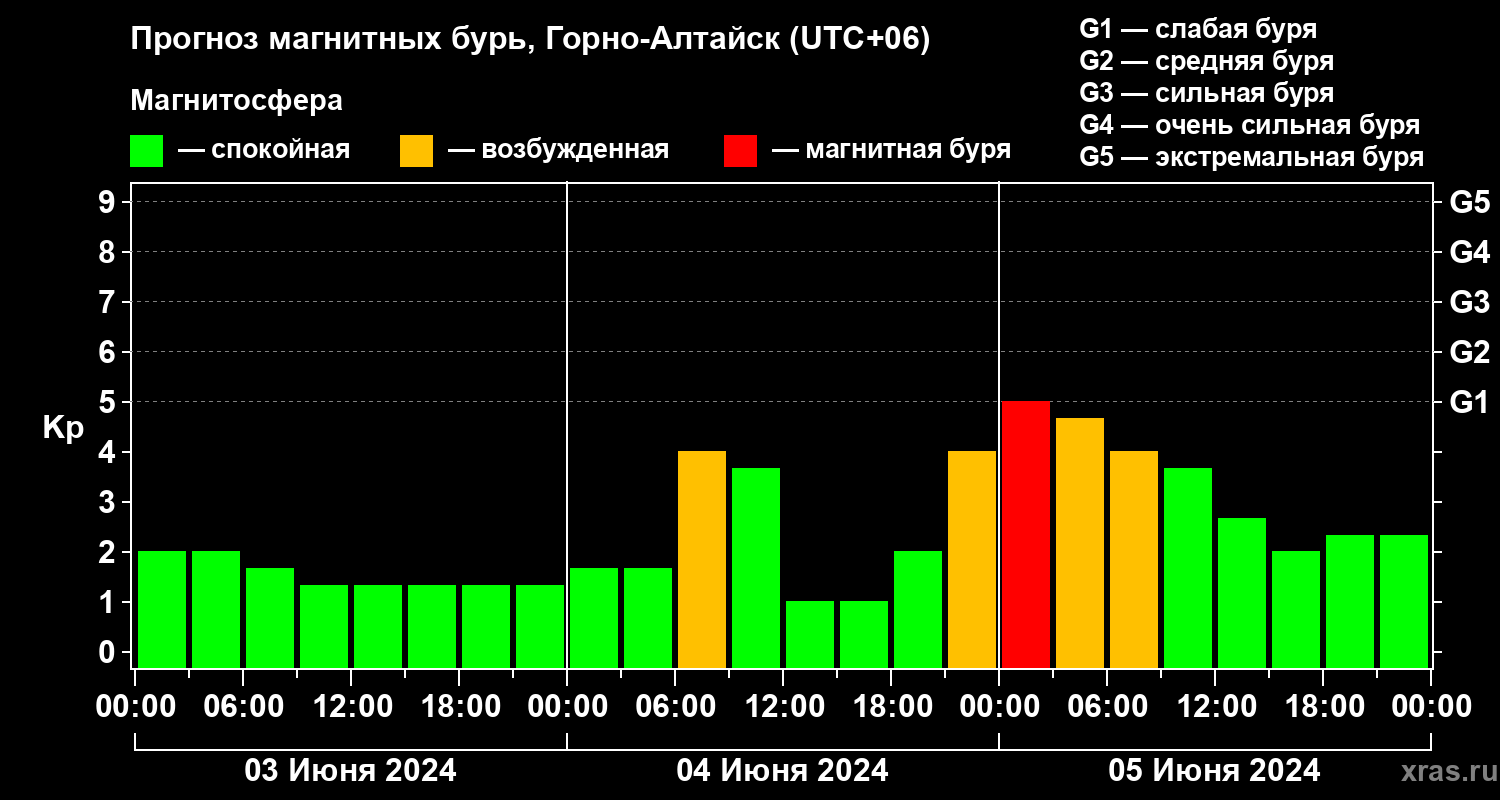 Прогноз магнитных бурь в Горно-Алтайске — 3 июня 2024 года