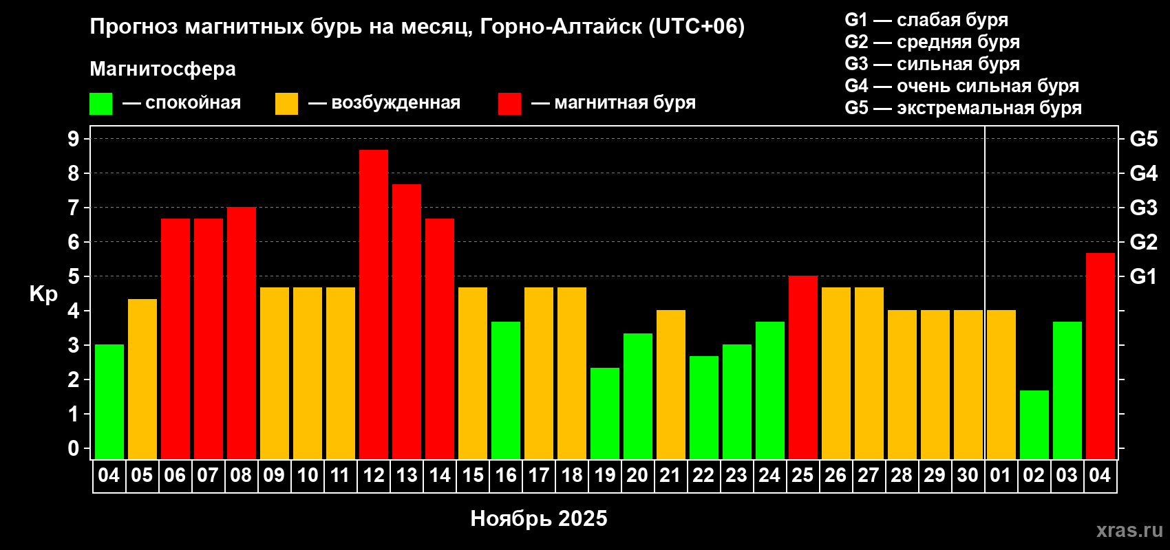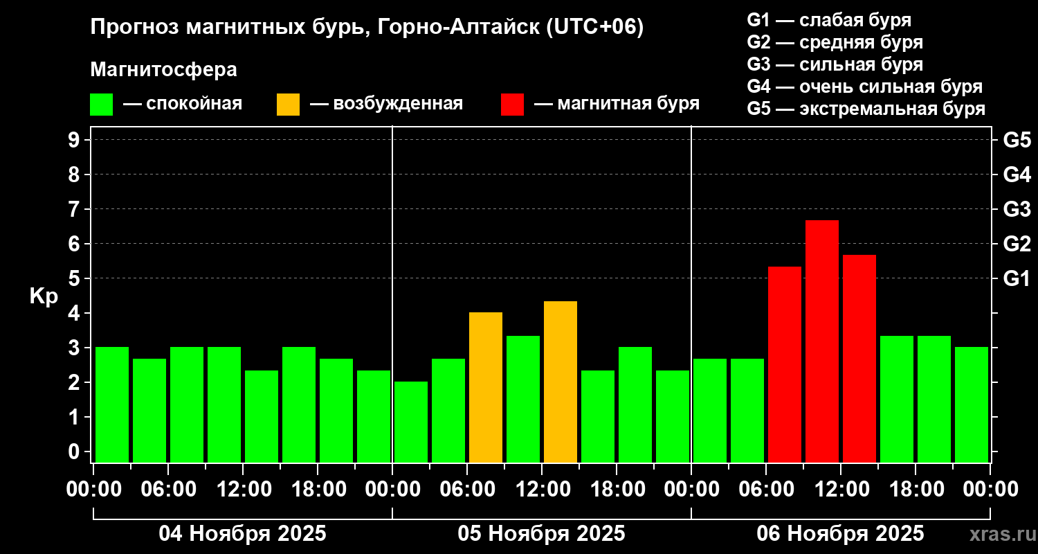 Прогноз магнитных бурь в Горно-Алтайске — 4 ноября 2025 года