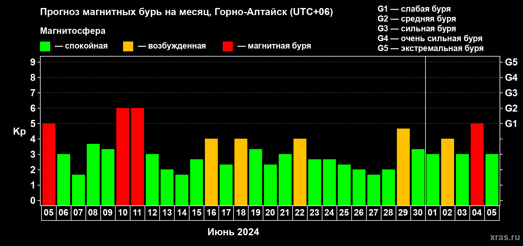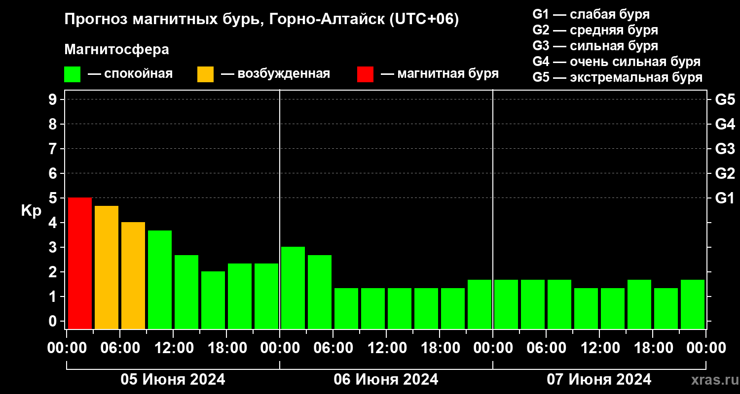 Прогноз магнитных бурь в Горно-Алтайске — 5 июня 2024 года