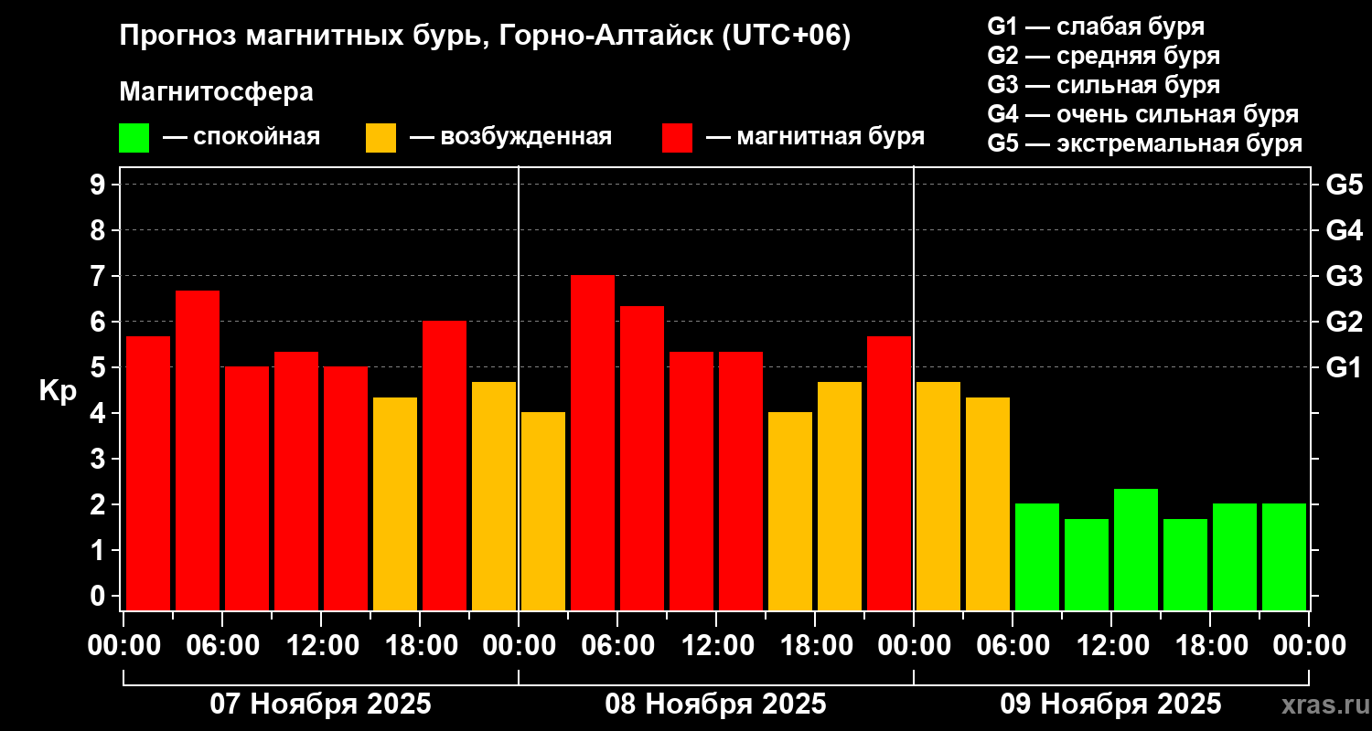 Прогноз магнитных бурь в Горно-Алтайске на 7 ноября 2025 года