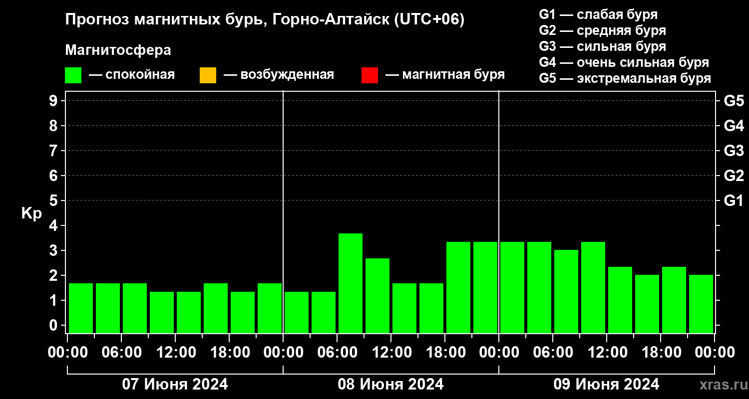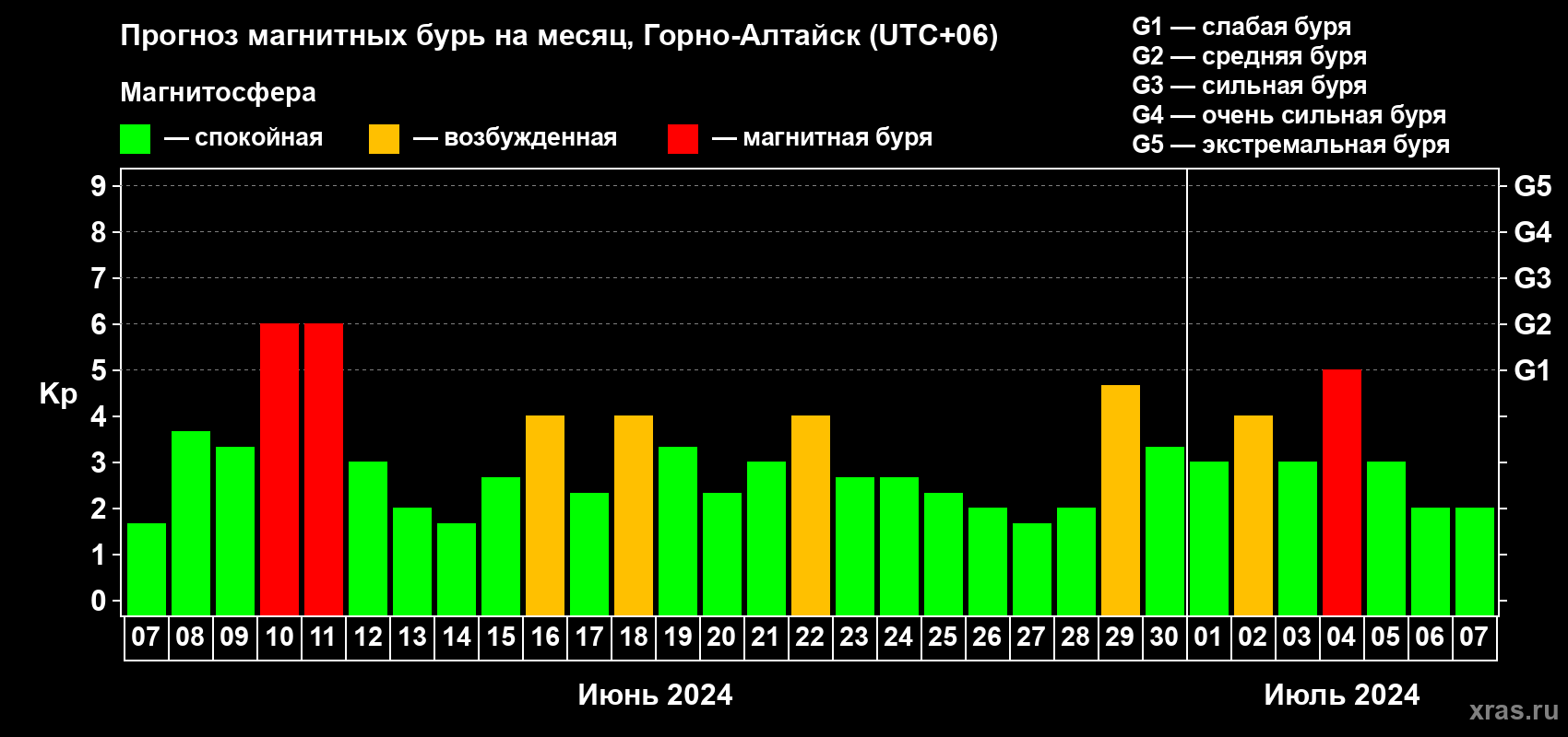Прогноз магнитных бурь в Горно-Алтайске — 7 июня 2024 года