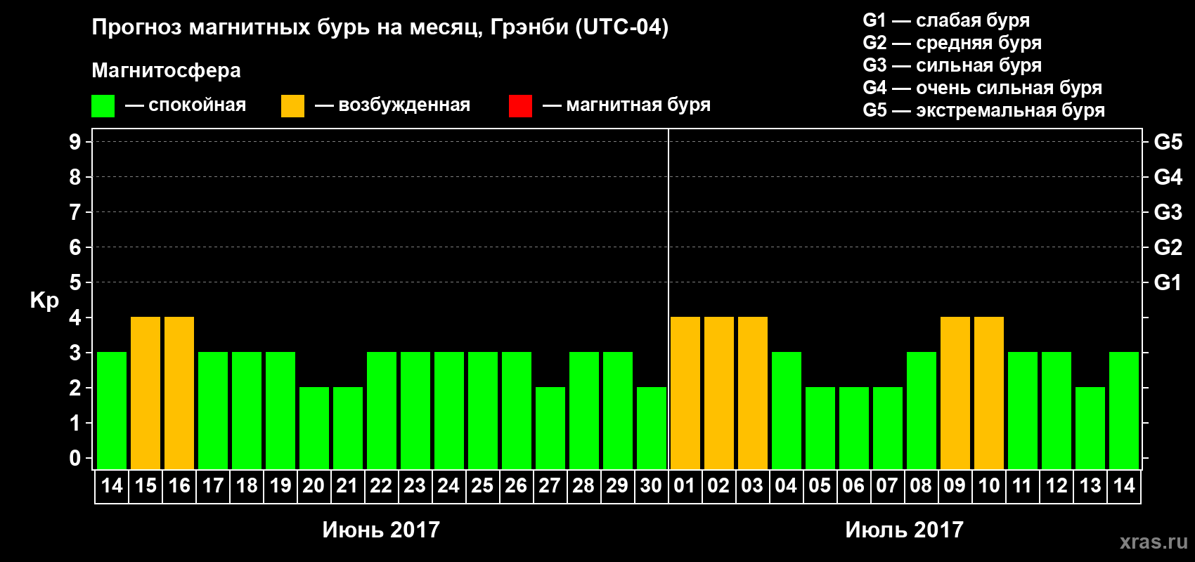 Прогноз магнитных бурь Грэнби — 14 июня 2017 года