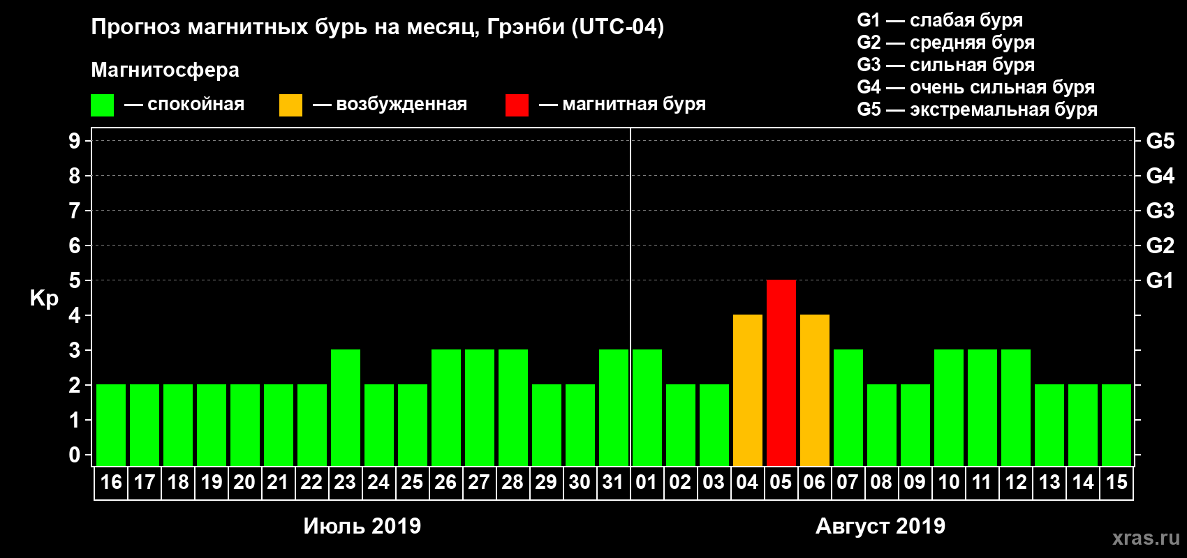 Прогноз магнитных бурь Грэнби на 16 июля 2019 года