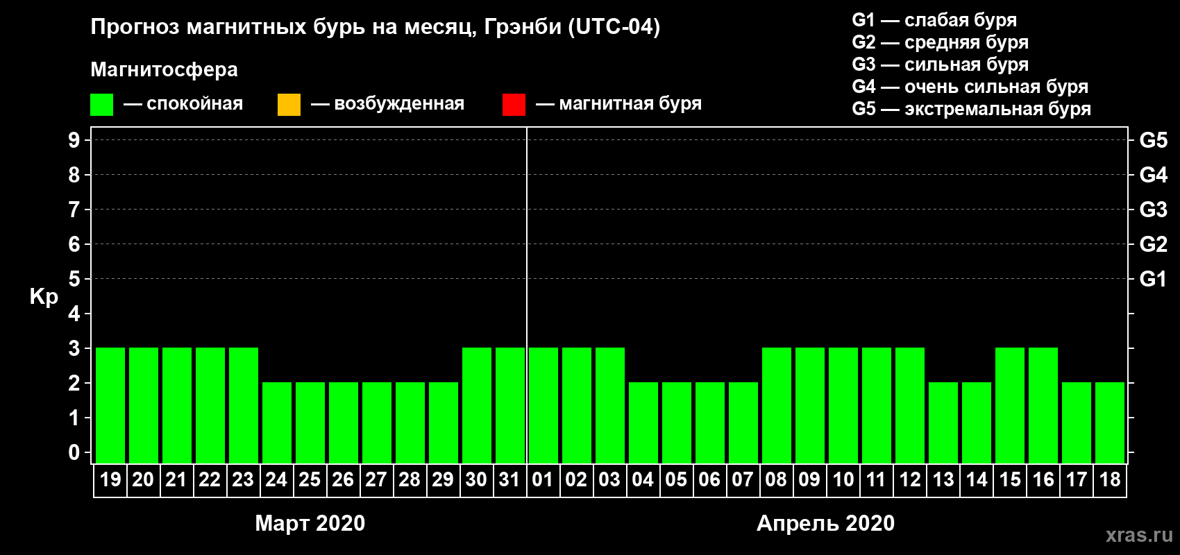 Прогноз магнитных бурь Грэнби на 19 марта 2020 года