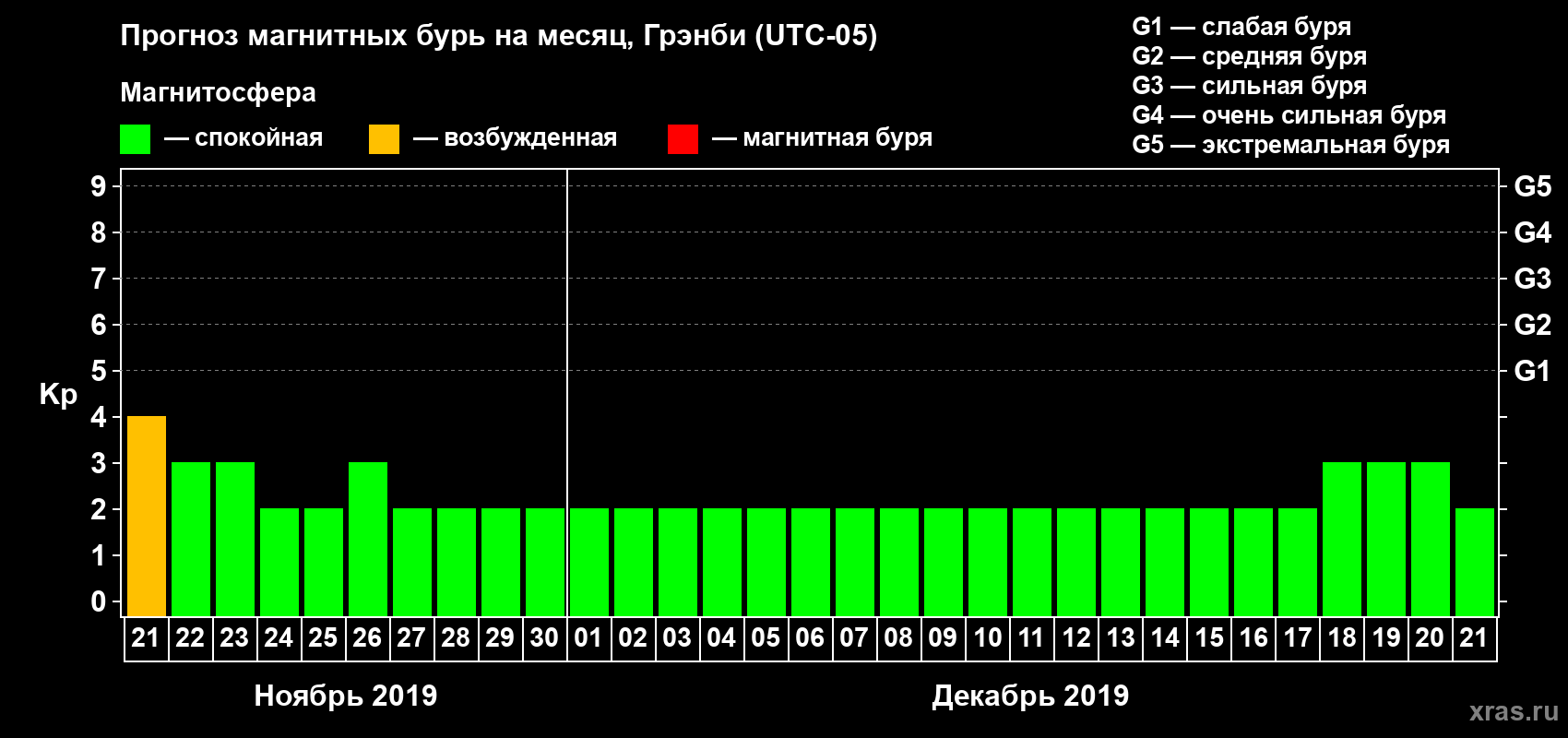 Прогноз магнитных бурь Грэнби на 21 ноября 2019 года