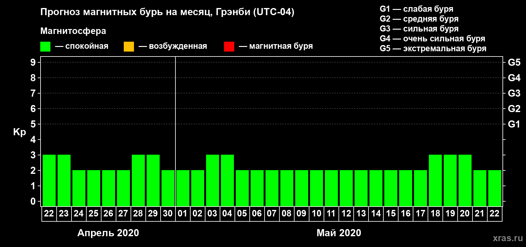 Прогноз магнитных бурь Грэнби на 22 апреля 2020 года