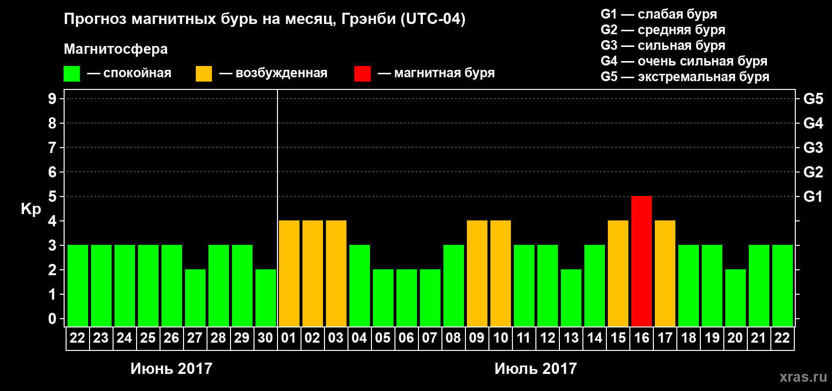 Прогноз магнитных бурь Грэнби — 22 июня 2017 года