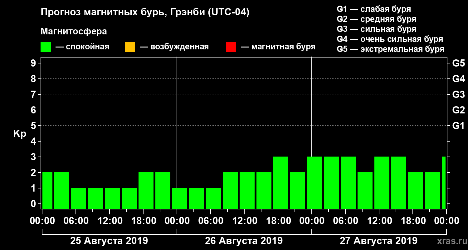 Прогноз магнитных бурь Грэнби на 25 августа 2019 года