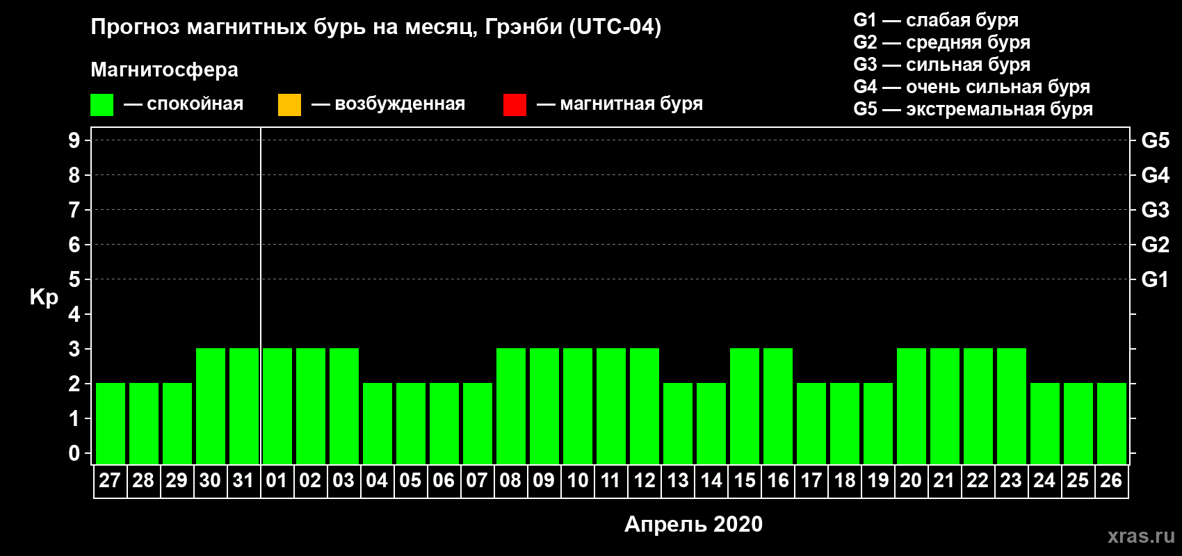 Прогноз магнитных бурь Грэнби — 27 марта 2020 года
