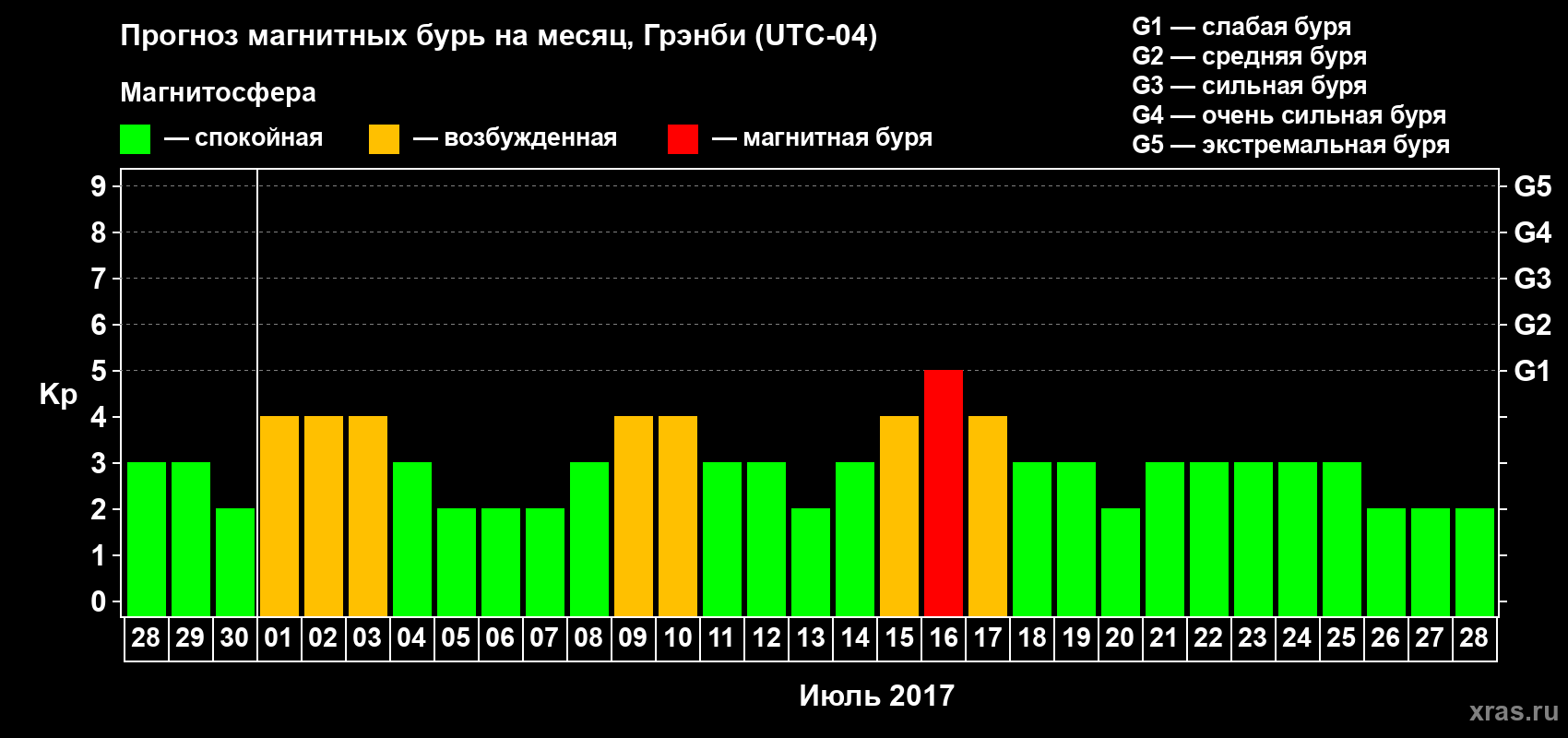 Прогноз магнитных бурь Грэнби на 28 июня 2017 года