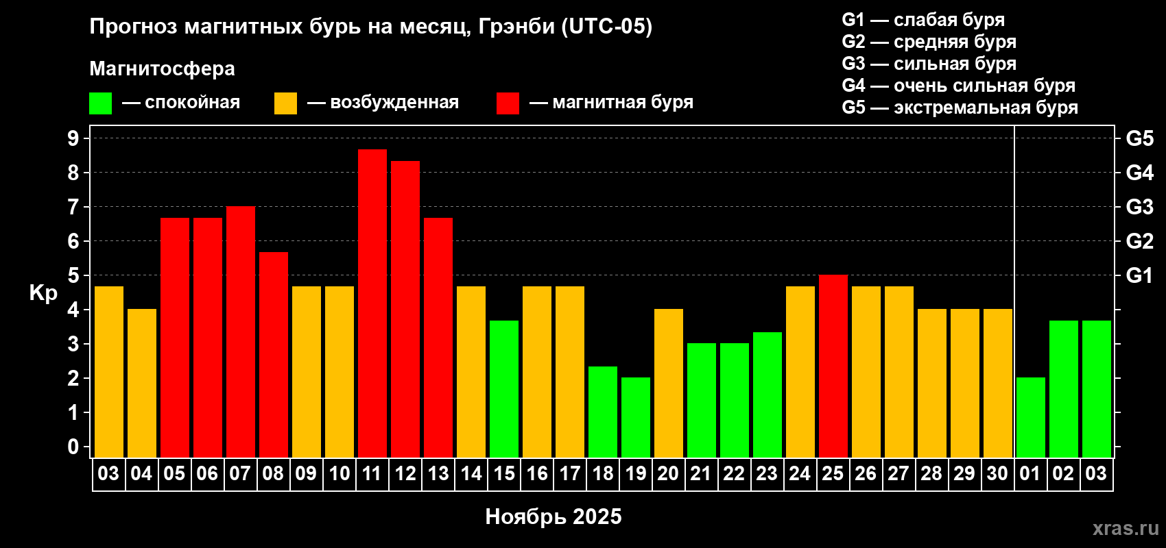 Прогноз магнитных бурь Грэнби на 3 ноября 2025 года
