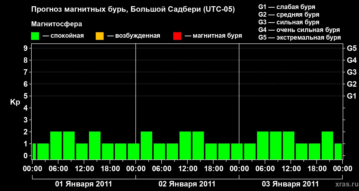 Прогноз магнитных бурь Большом Садбери — 1 января 2011 года
