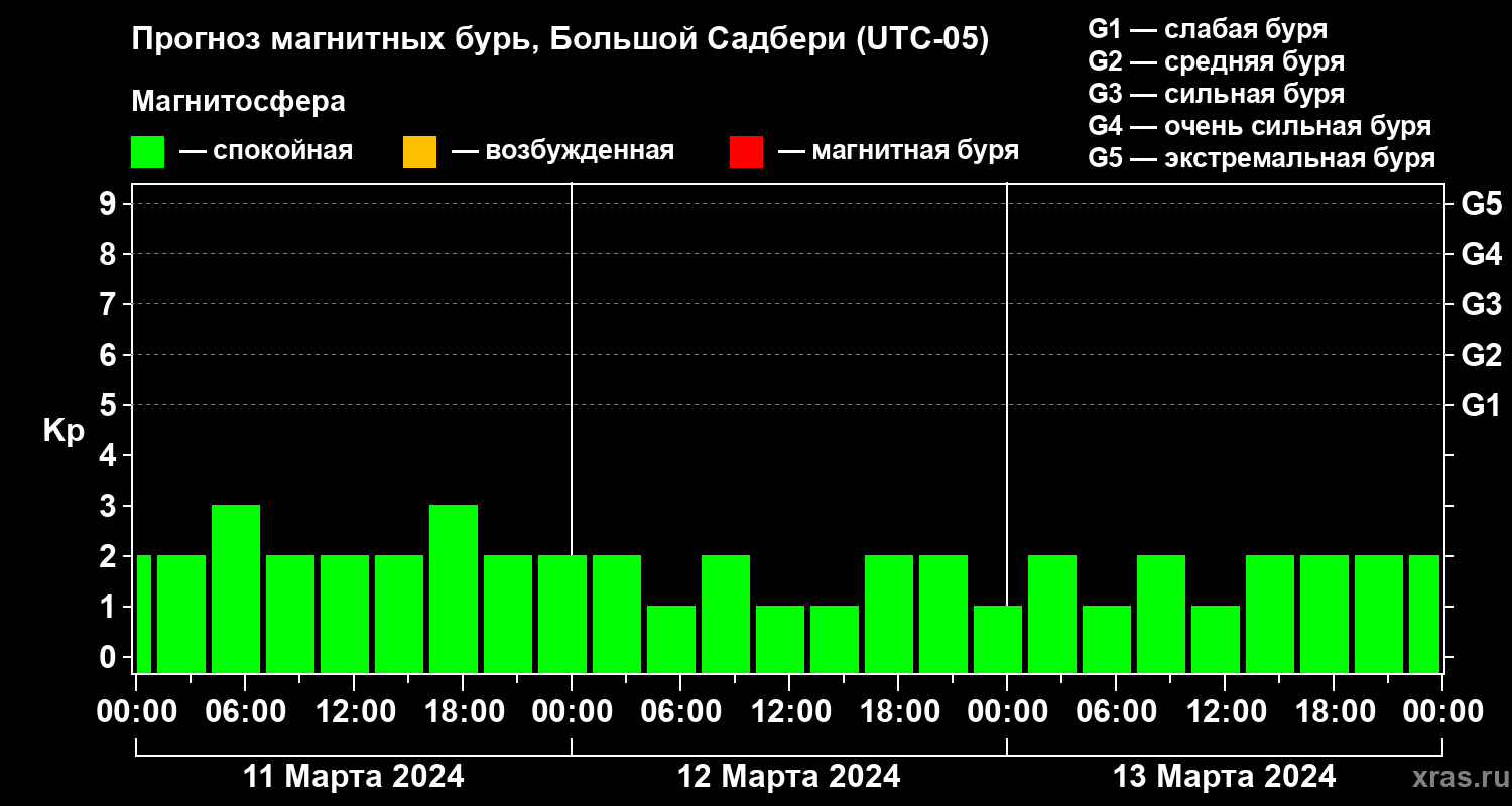 Прогноз магнитных бурь Большом Садбери на 11 марта 2024 года