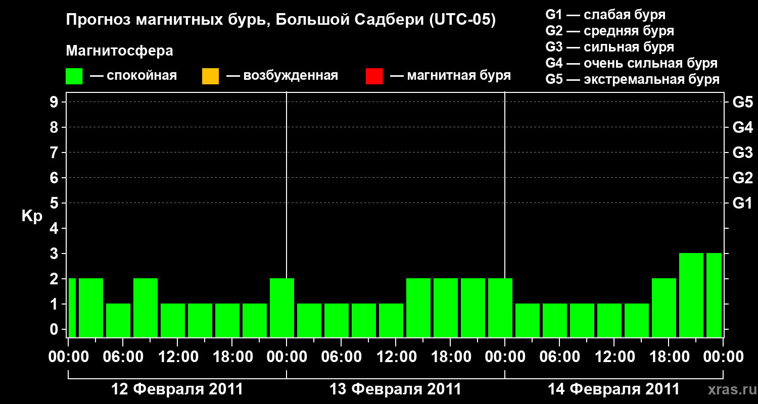 Прогноз магнитных бурь Большом Садбери — 12 февраля 2011 года