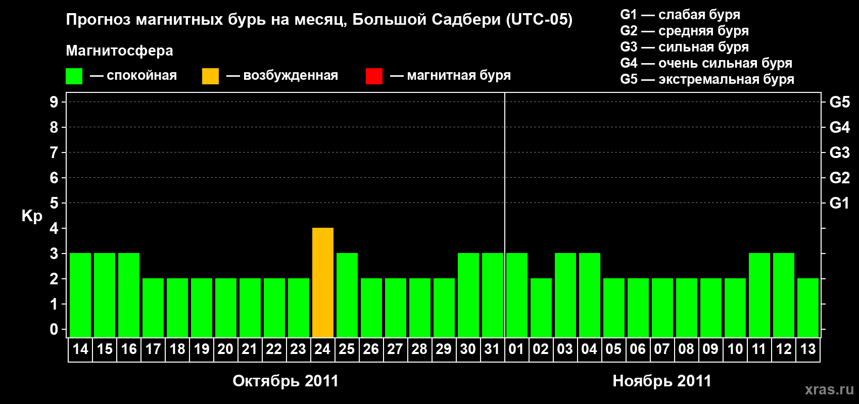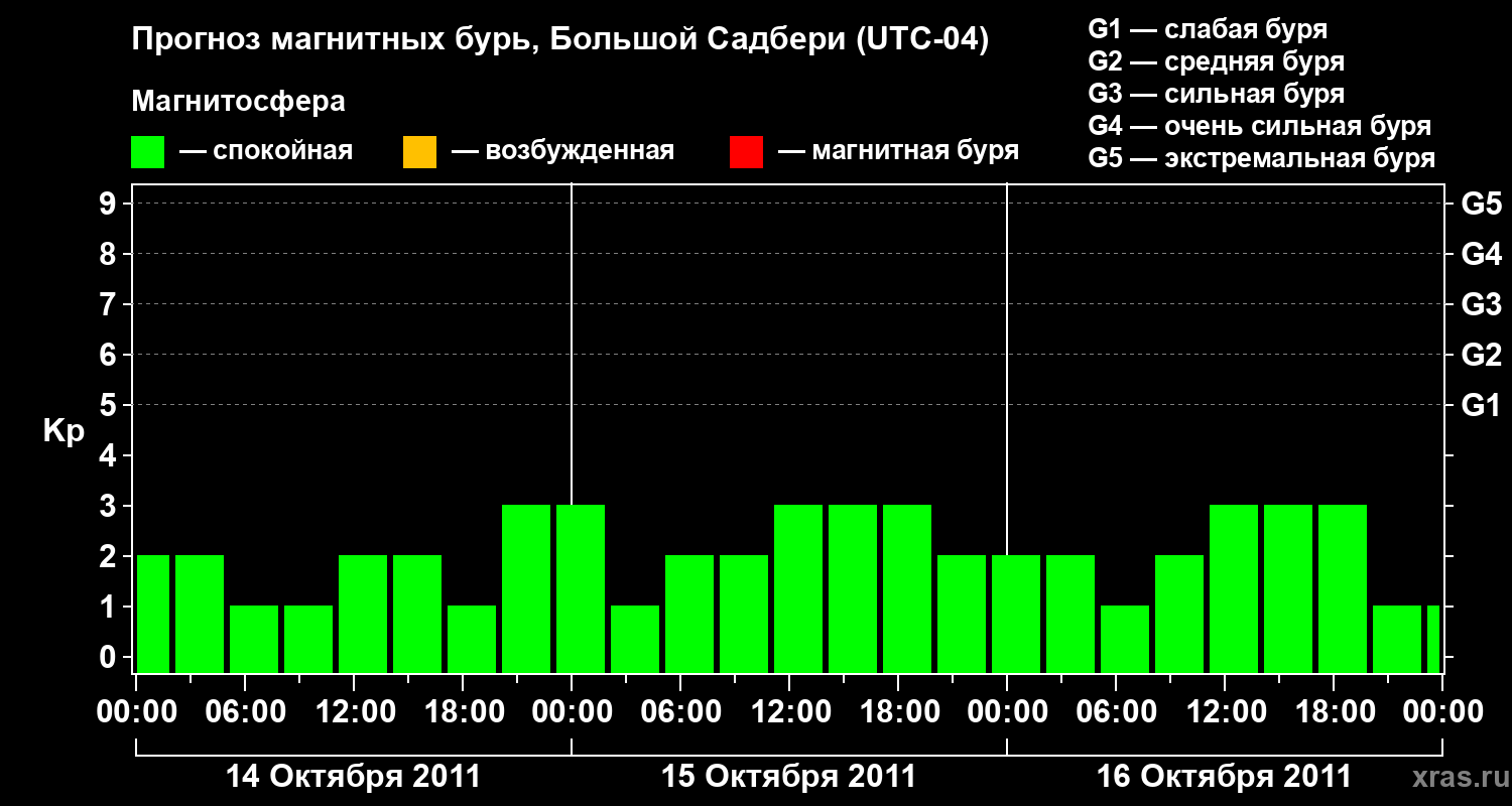Прогноз магнитных бурь Большом Садбери — 14 октября 2011 года