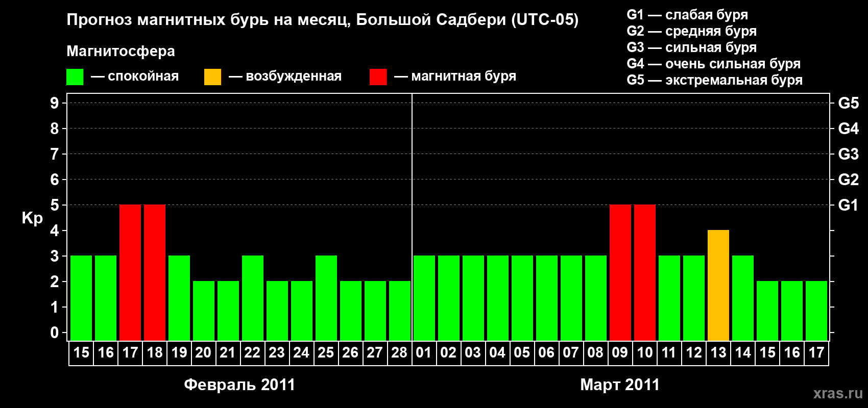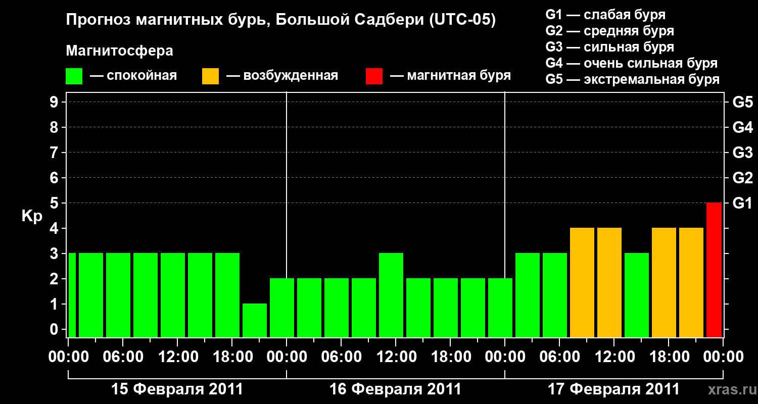 Прогноз магнитных бурь Большом Садбери — 15 февраля 2011 года