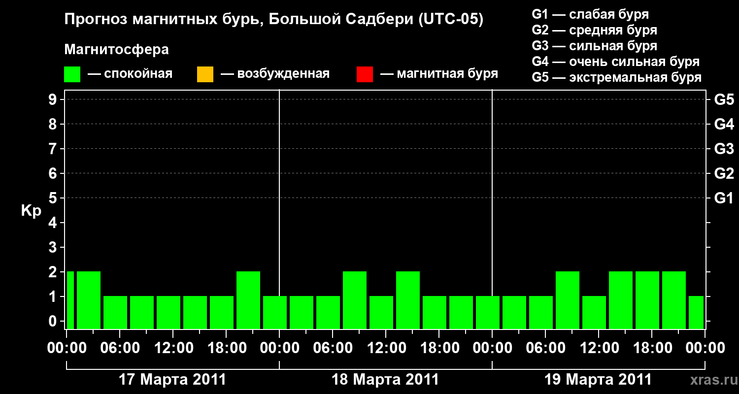 Прогноз магнитных бурь Большом Садбери — 17 марта 2011 года