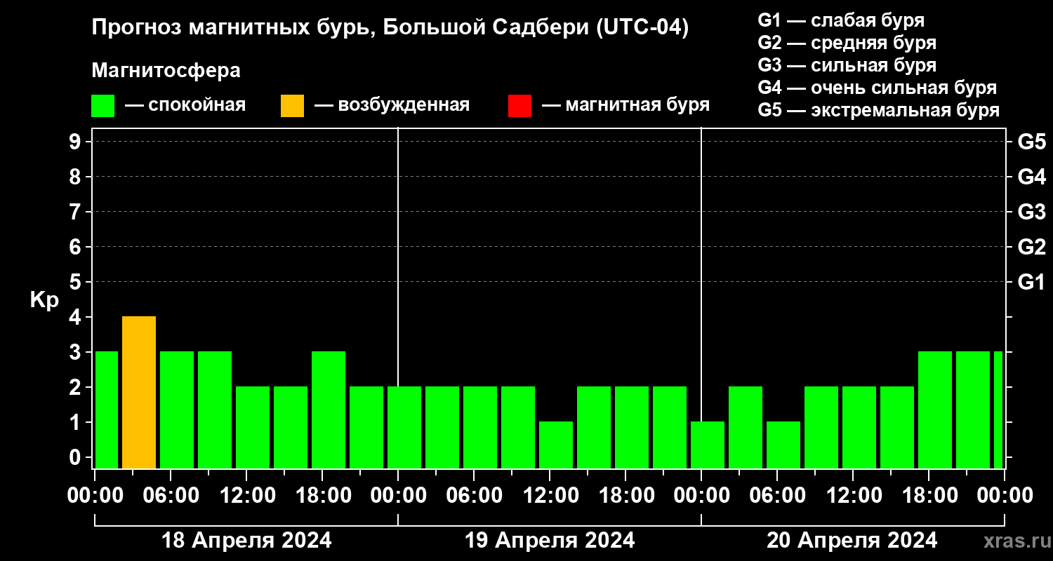 Прогноз магнитных бурь Большом Садбери на 18 апреля 2024 года