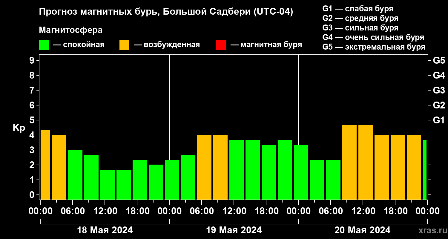 Прогноз магнитных бурь Большом Садбери на 18 мая 2024 года