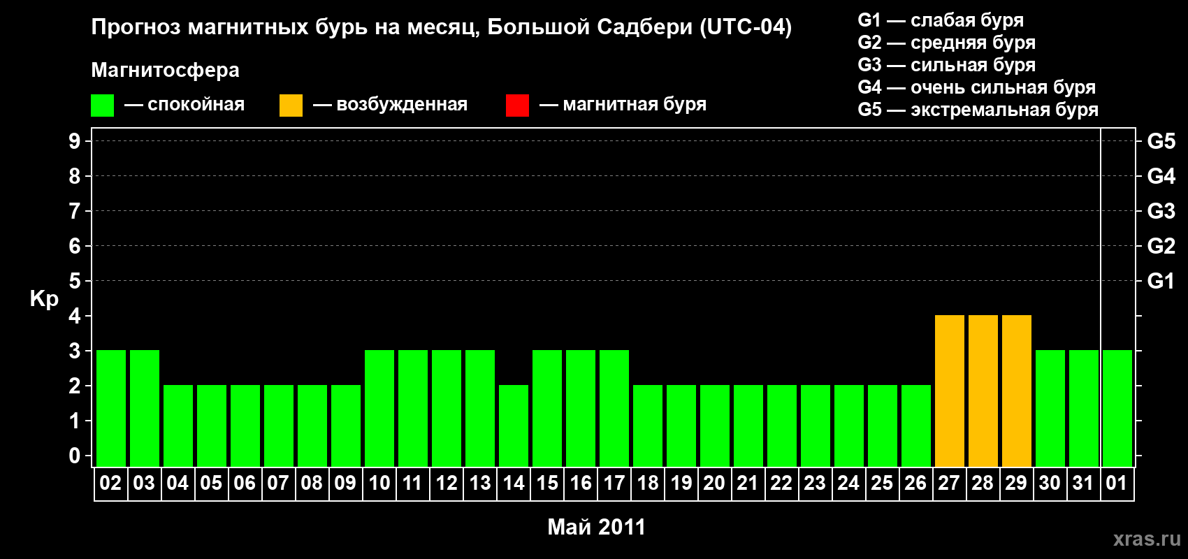Прогноз магнитных бурь Большом Садбери — 2 мая 2011 года