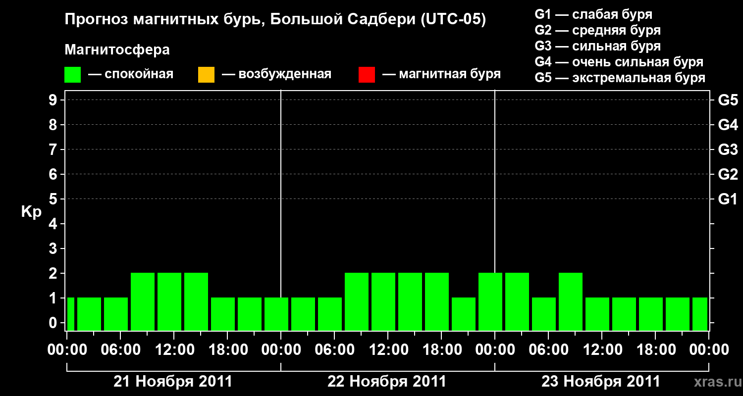 Прогноз магнитных бурь Большом Садбери — 21 ноября 2011 года