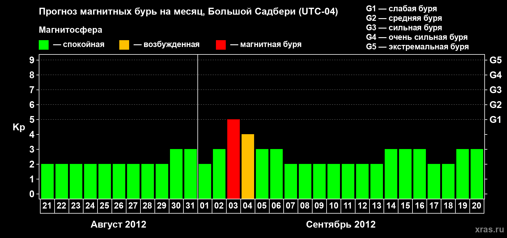 Прогноз магнитных бурь Большом Садбери — 21 августа 2012 года