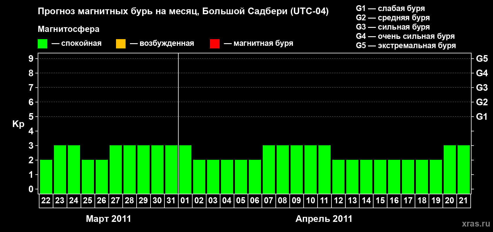 Прогноз магнитных бурь Большом Садбери — 22 марта 2011 года